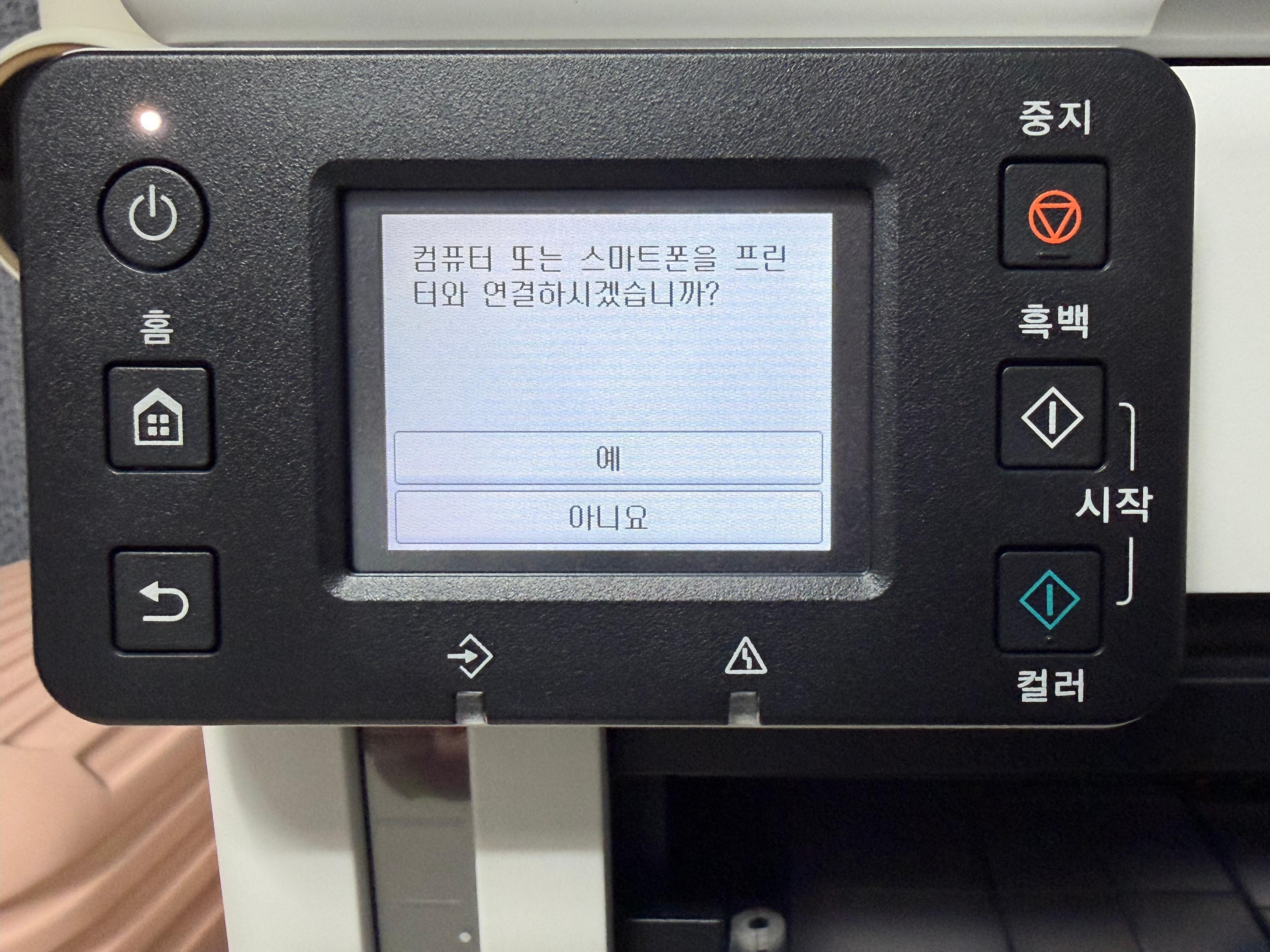 제품의 전원을 연결하고 전원 버튼을 누르면 언어선택에서부터 날짜, 시간 등을 설정하고 바로 잉크 주입을 요구하는 화면으로 넘어갑니다. 한글을 지원하기 때문에 설정에 어려움은 없습니다.
