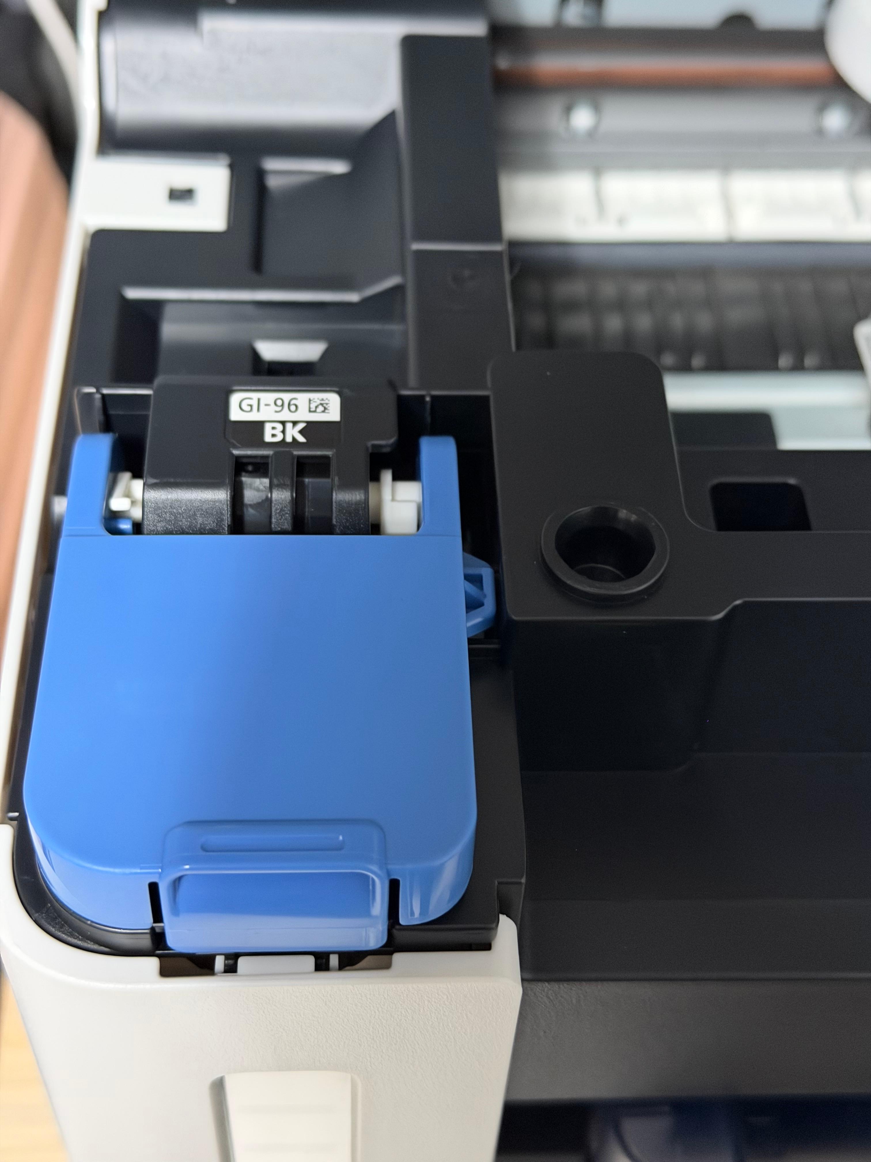 캐논 GX7192의 잉크는 검은색, 옐로우, 마젠타, 시안 색상이며, 4색 모두 안료잉크입니다. 안료 잉크는 그전까지 사용되던 염료 잉크와 달리 물에 번지지 않으며, 내구성이 좋습니다. 다만 인쇄 품질이 염료에 비해서는 떨어진다고들 합니다. 그래서 포토 프린터에서는 사용되지 못합니다만, 집이나 사무실에서 쓰기에는 부족함이 없습니다. 집에서 포토 프린터 레벨로 인쇄할 일은 그리 많지 않은 데다가 안료잉크로 프린트한 것도 충분히 볼 만하기 때문입니다.