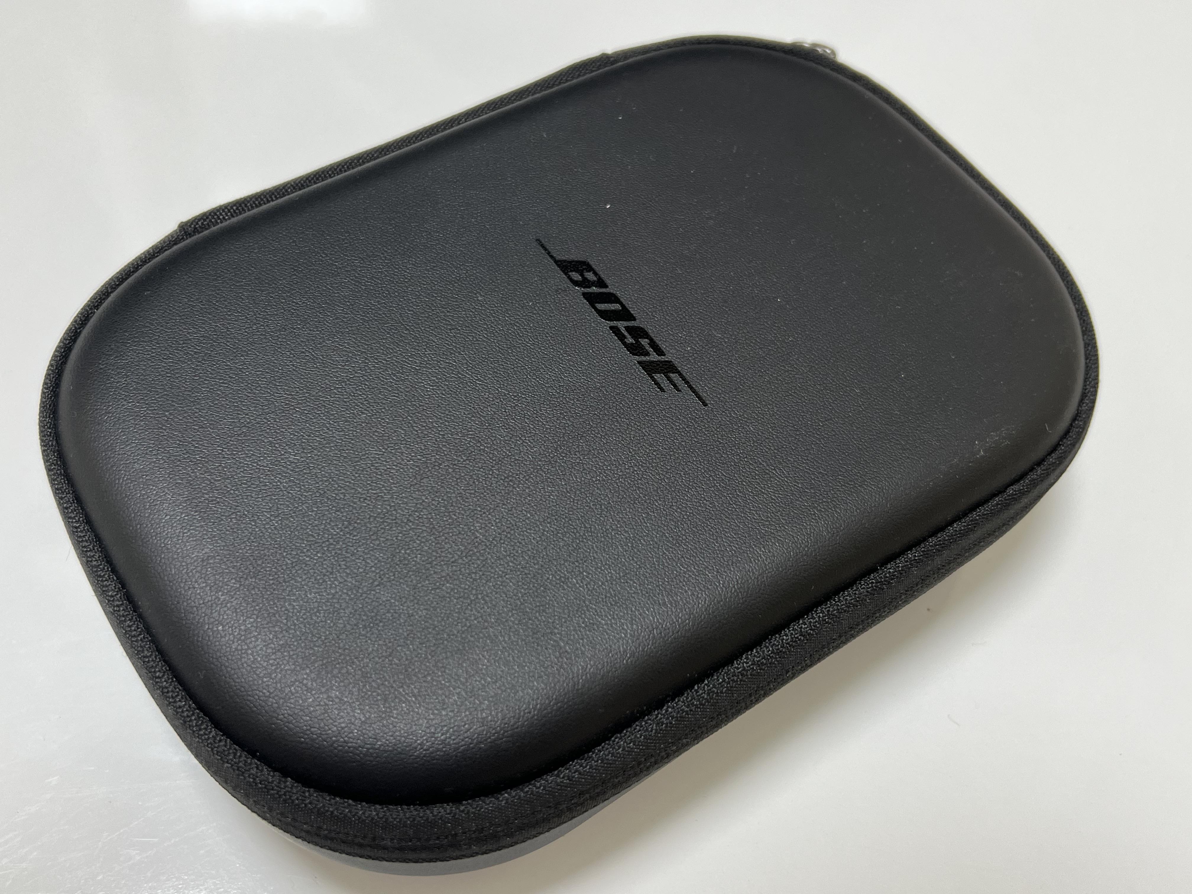 BOSE QC45의 박스 패키지 안에는 박스를 거의 가득 채우고 있는 파우치가 들어 있습니다. 파우치의 재질은 인조가죽으로 위장된 합성 비닐이 아닐까 싶습니다. 다만 재질의 느낌은 꽤나 고급스럽습니다. 비슷한 재질의 Anker Q45는 물론이고, Sony의 WH-1000XM5보다 재질 자체의 고급스러움은 높게 평가하고 싶습니다. 무두질이 잘 된 실재 가죽 같아 보이거든요. 정 중앙에 보스 로고가 실크스크린 방식으로 추측되는 형태로 인쇄돼 있습니다.