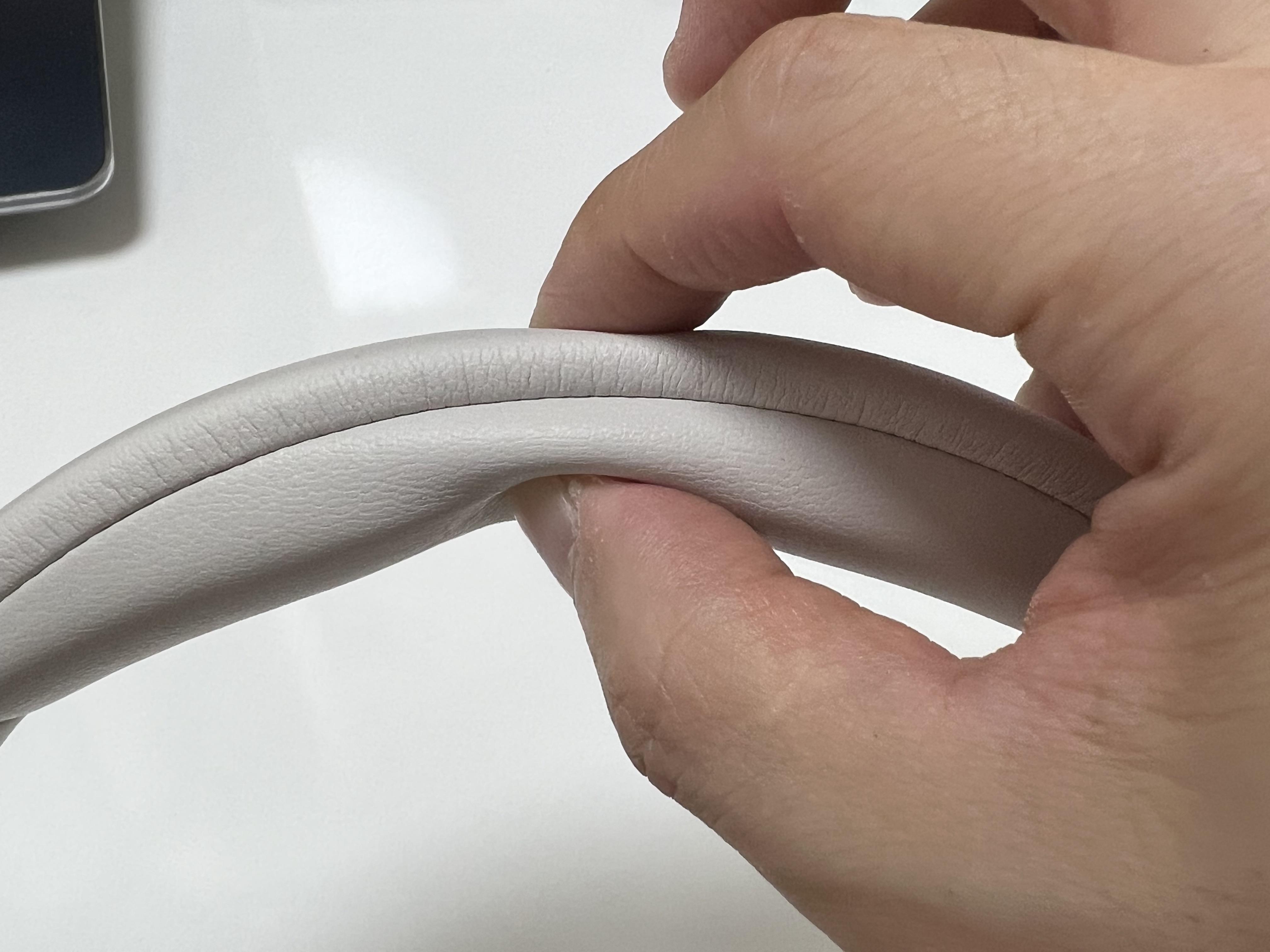 헤드밴드는 상당히 부드럽고 말랑거립니다. 그래서 머리를 짓누르는 느낌도 덜하고, 착용감도 좋습니다. 착용감 만큼은 최고 수준인 것 같습니다. 다만 패드가 상당히 얇고 말랑거리기 때문에 땀은 좀 차더라고요. 땀 차는 걸로는 소니의 1000XM5가 단연 1등입니다. BOSE QC45는 그 정도는 아니지만 그래도 여름에 사용하기엔 무리가 따를 것 같습니다.