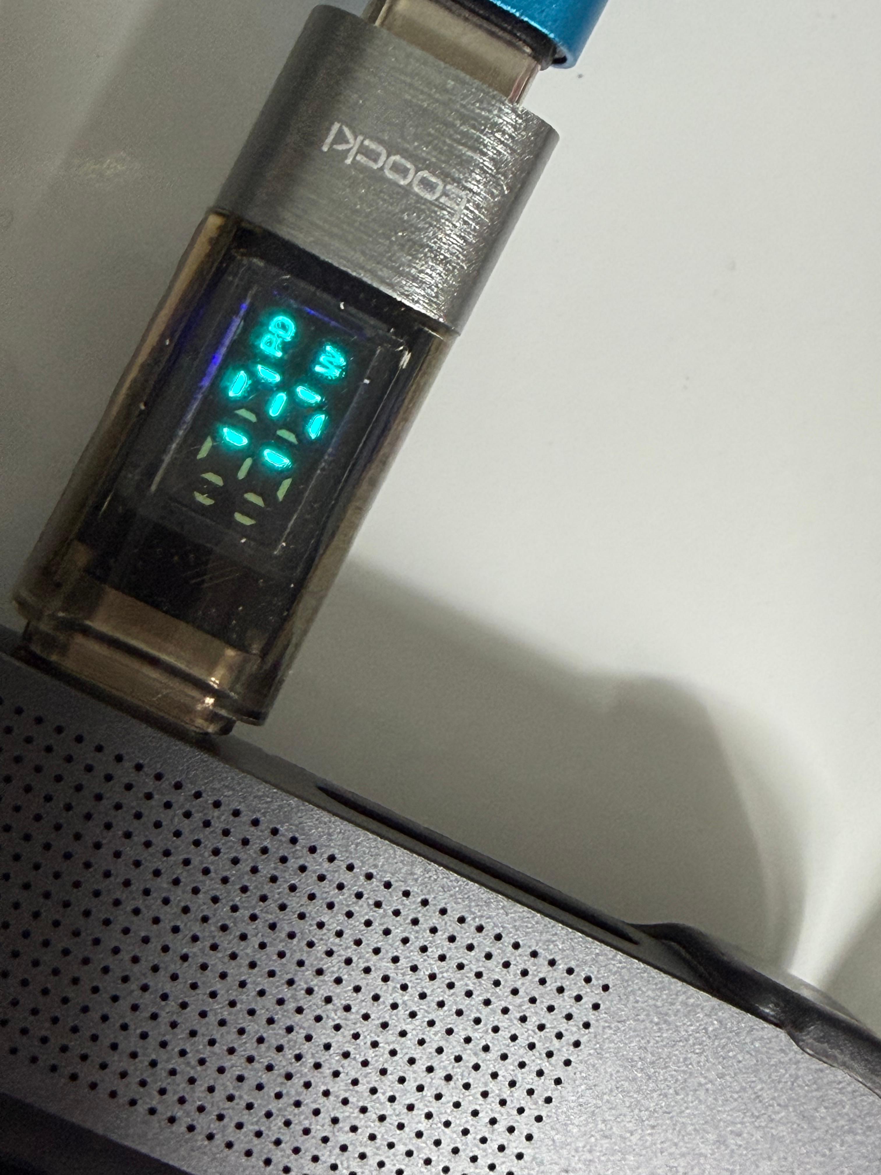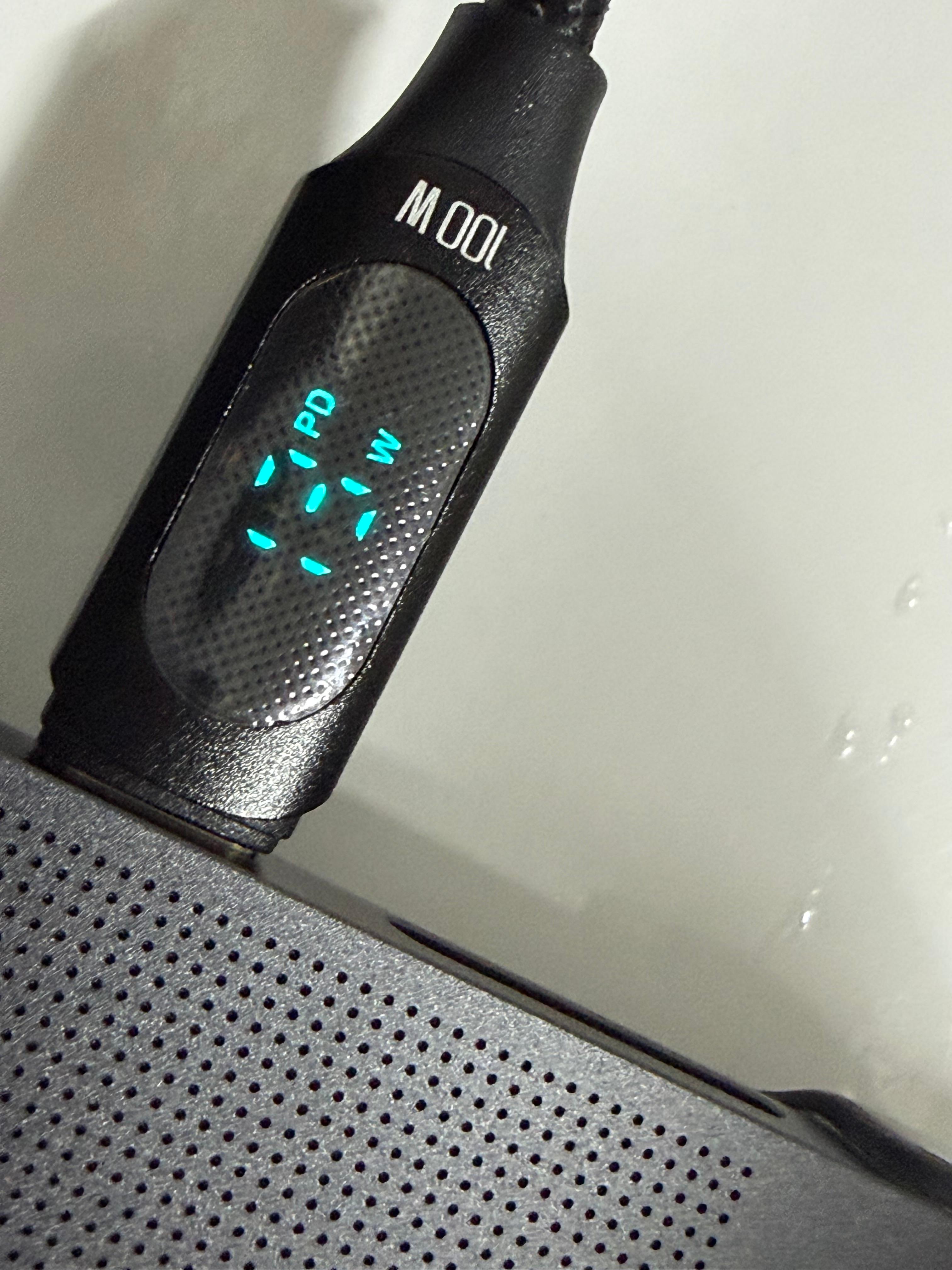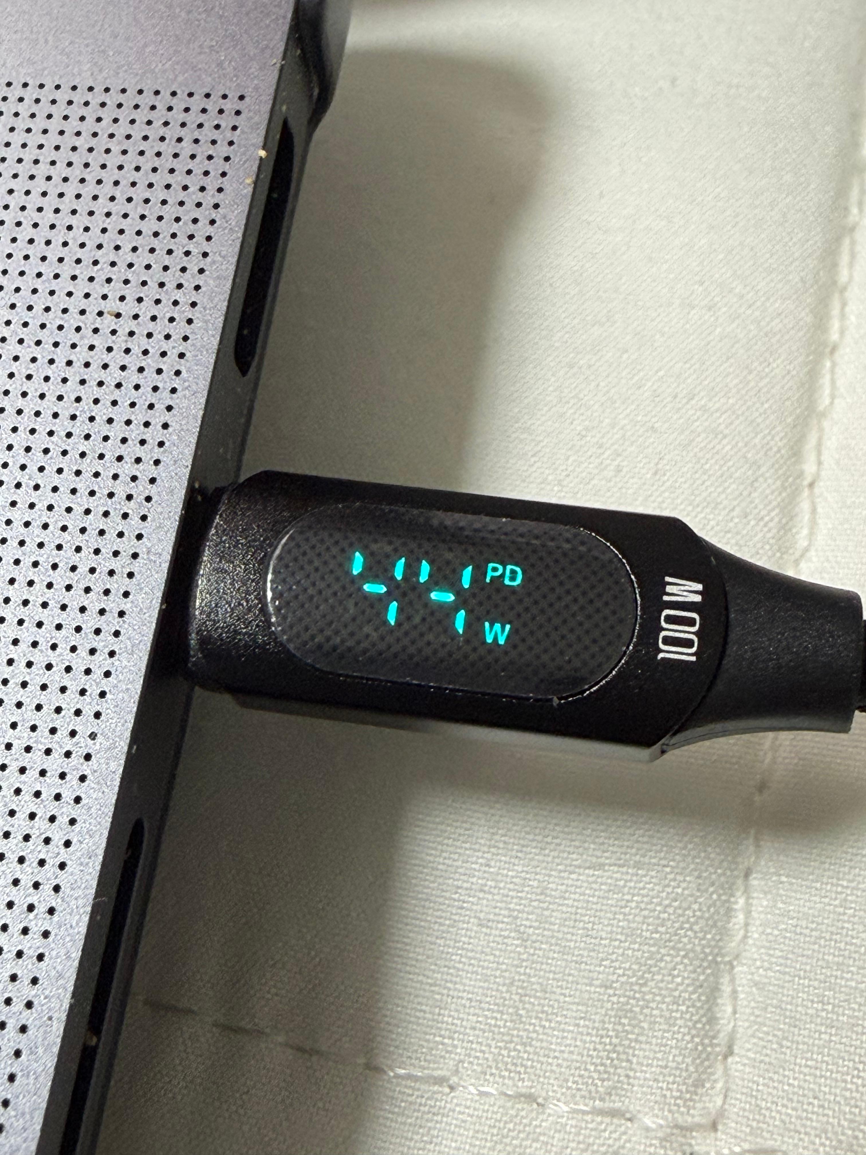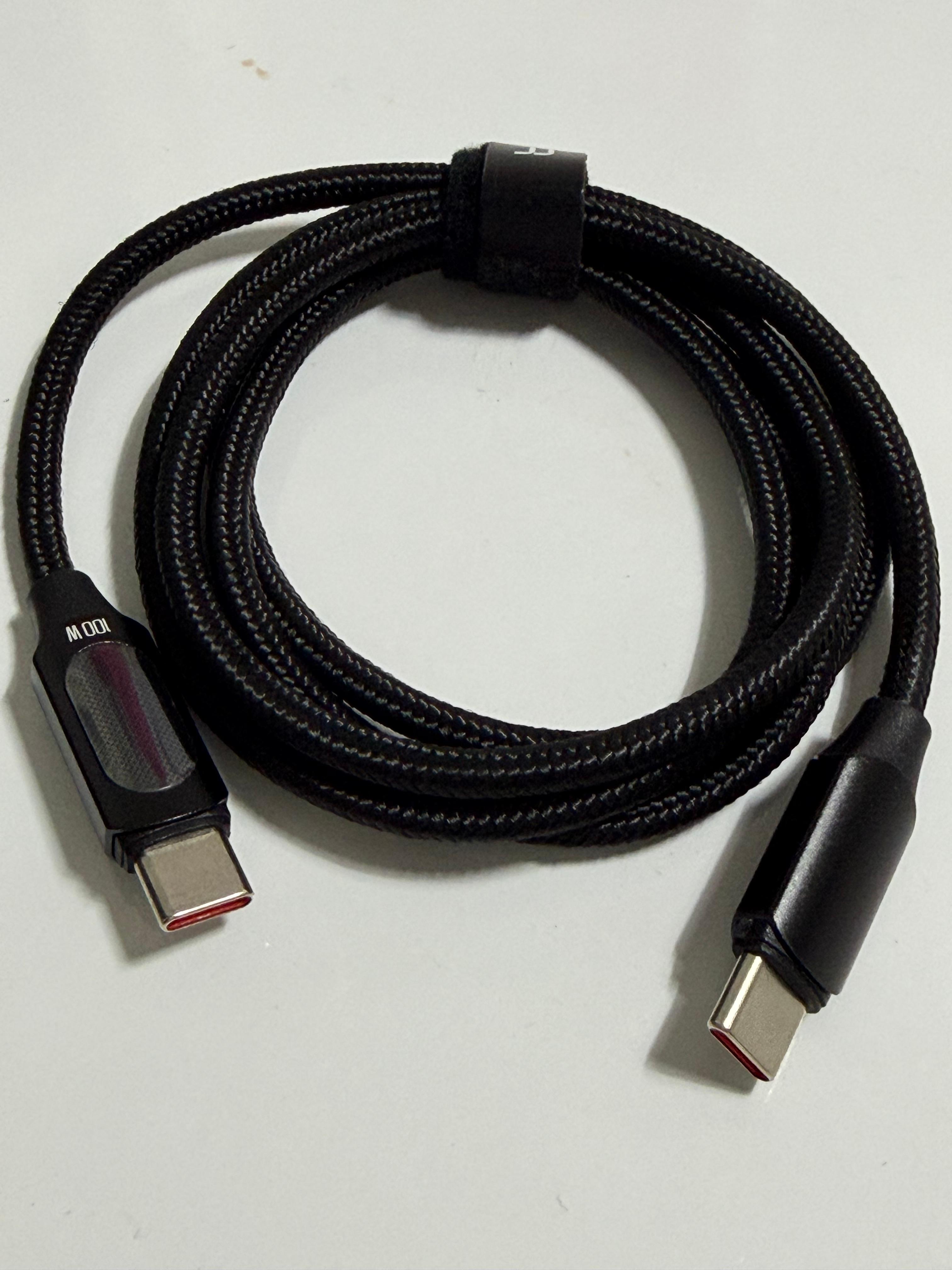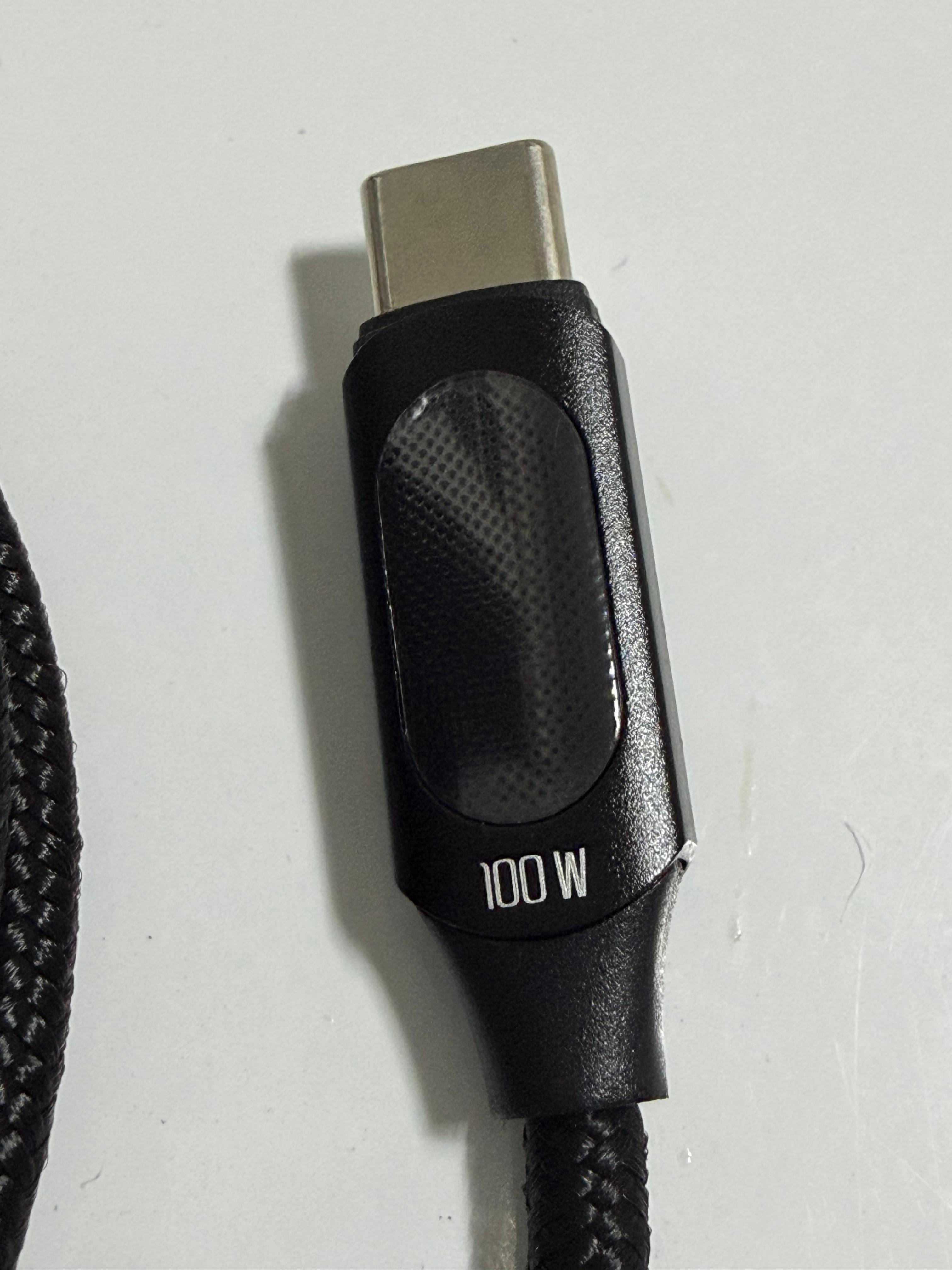 USB 케이블의 디스플레이는 다른 일반적인 USB 케이블과 큰 차이가 나지는 않습니다. 디스플레이가 내장된 케이블이 이 정도면 위의 어댑터 사이즈가 다소 아쉽게 느껴집니다. 케이블의 전송 가능한 최대 전력은 100W라고 표기가 되어 있습니다. 그러나 실제로 100W를 전송하지는 못할 겁니다. USB 케이블 중에서 이렇게 디스플레이가 내장된 케이블의 품질은 그리 좋은 편이 아니어서 표기 전력을 100% 전송하지 못할 가능성이 매우 높습니다. 그래도 디스플레이로 충전량을 확인할 수 있으니 필요에 따라 짧은 시간 사용하기에는 문제가 없을 겁니다.