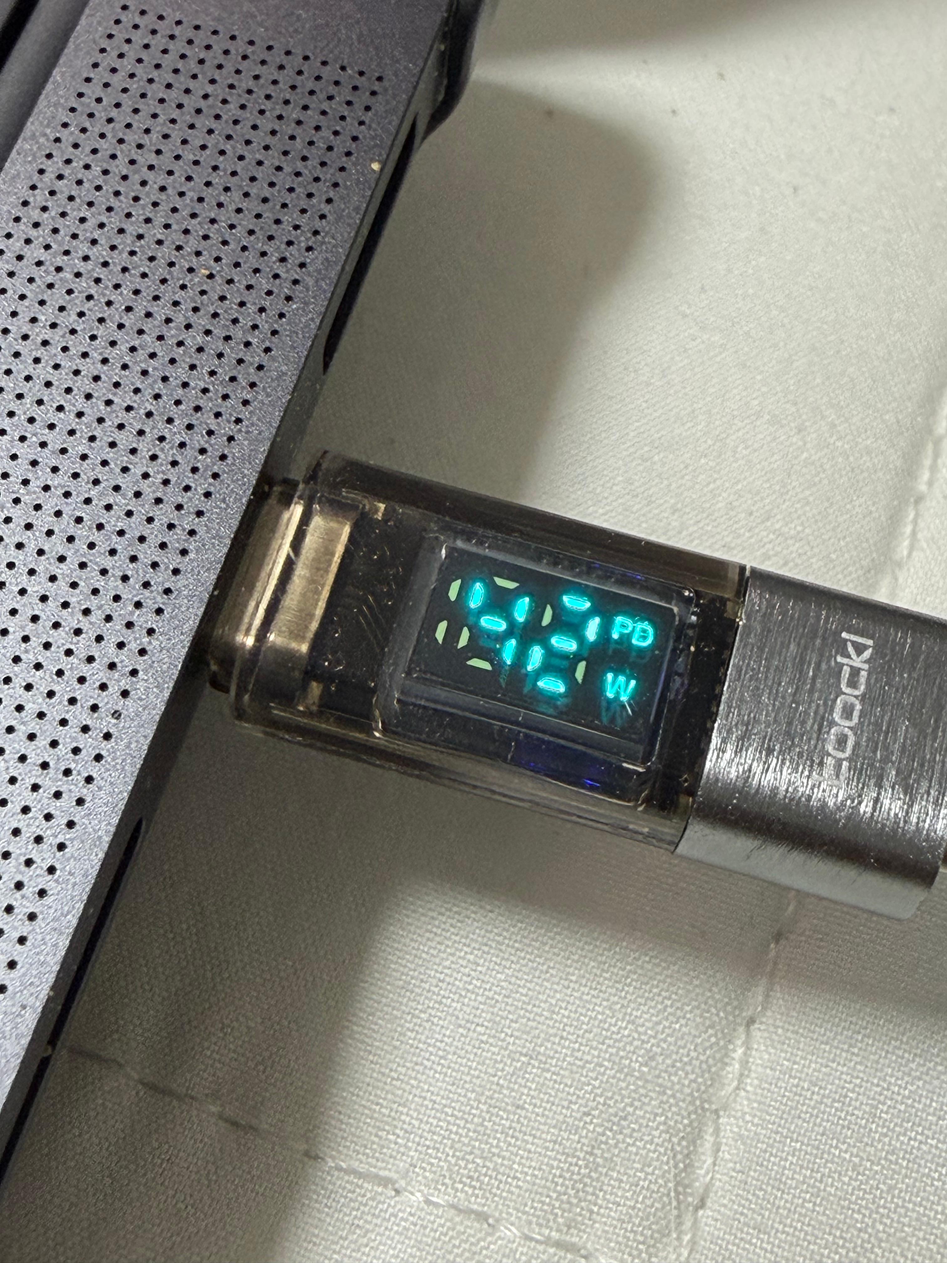 최대 96W까지 충전이 가능한 맥북 프로 M5에 연결해서 측정을 해 봤습니다. 배터리가 이미 80% 이상이어서 그런지 충전 속도는 13W에 그치지만 두 제품이 공히 같은 속도를 보여 주는 걸 보면 어느 정도 신뢰성은 가질 수 있을 것 같습니다. 아마도 같은 칩셋을 사용한 것이 아닌가 예상할 수 있습니다.