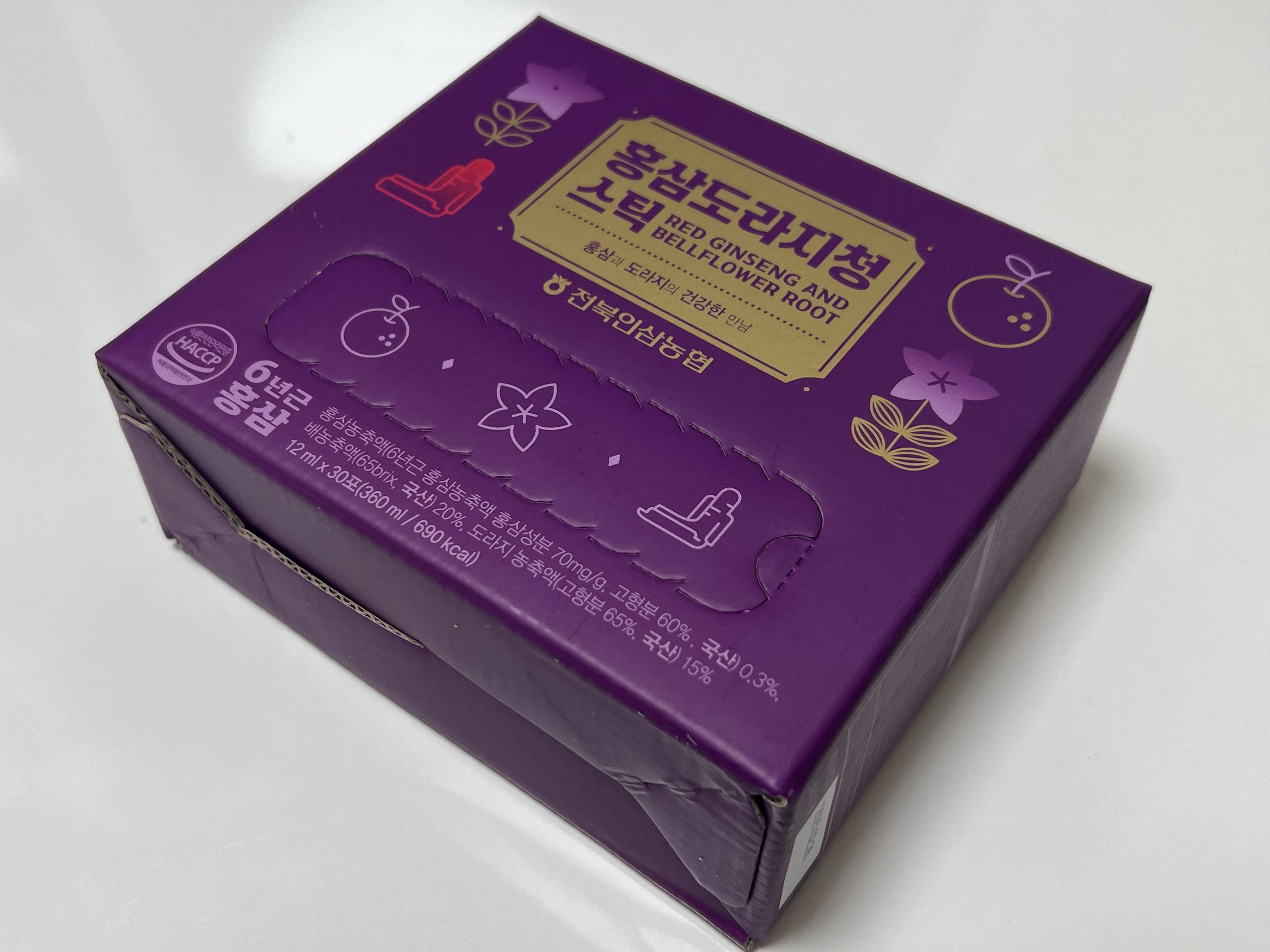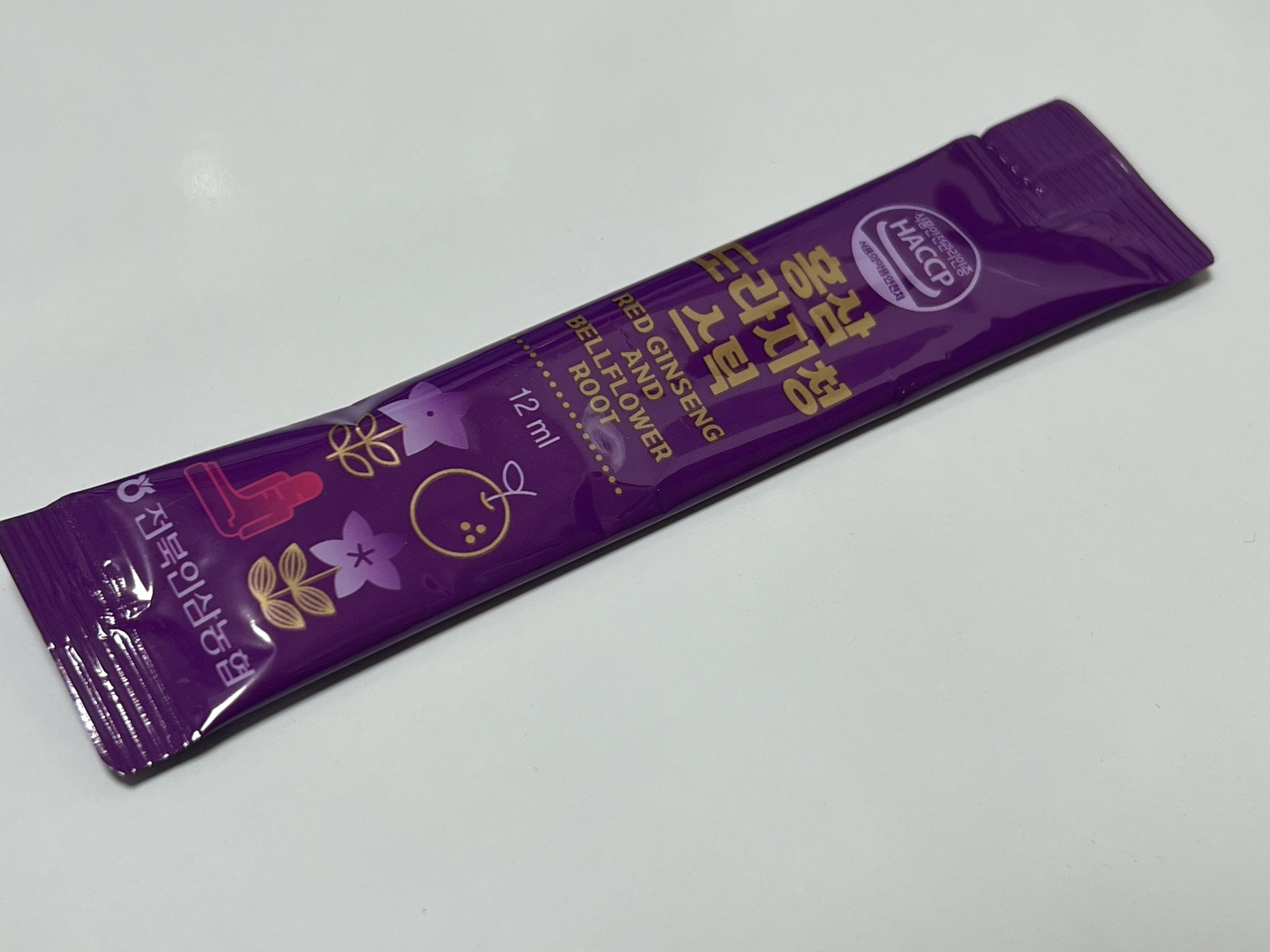 전북인삼농협 홍삼도라지청 스틱은 보라색 박스에 들어 있습니다. 아마도 도라지꽃 색상을 표방한 게 아닌가 싶습니다. 우리가 민요로 알고 있는 도라지꽃은 백도라지라지만 거의 대부분의 야생 도라지에 피는 꽃은 보라색입니다. 왜 그런지는 모르겠지만 양식 도라지에 피는 꽃은 흰색이라고 하네요. 품종 개량이 된 걸까요? 아무튼 보라색은 그런 의미인 것 같습니다.