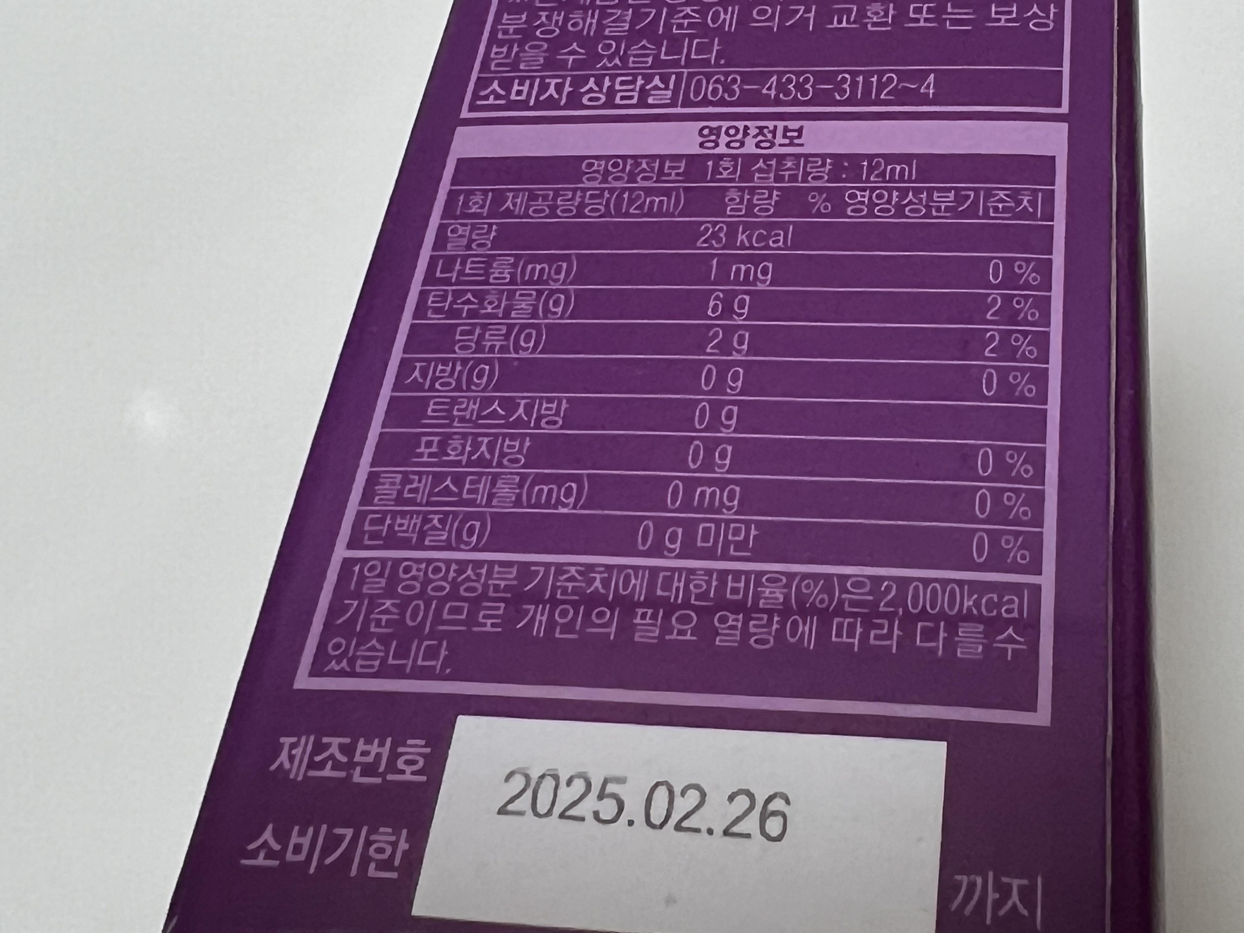 특이하게 유통기한 대신 소비기한을 적어 놨습니다. 아무래도 건강보조식품이어서 그런 모양입니다. 유통기한과 취식 가능한 기간은 구분해야 하는 게 사실이니까요. 저는 모든 식품류에도 유통기한 대신 취식기한, 소비기한을 적어 주길 바라는 편입니다. 유통기한은 불필요한 낭비를 불러오기도 합니다. 충분히 먹을 수 있음에도 버리게 되곤 하니까요.