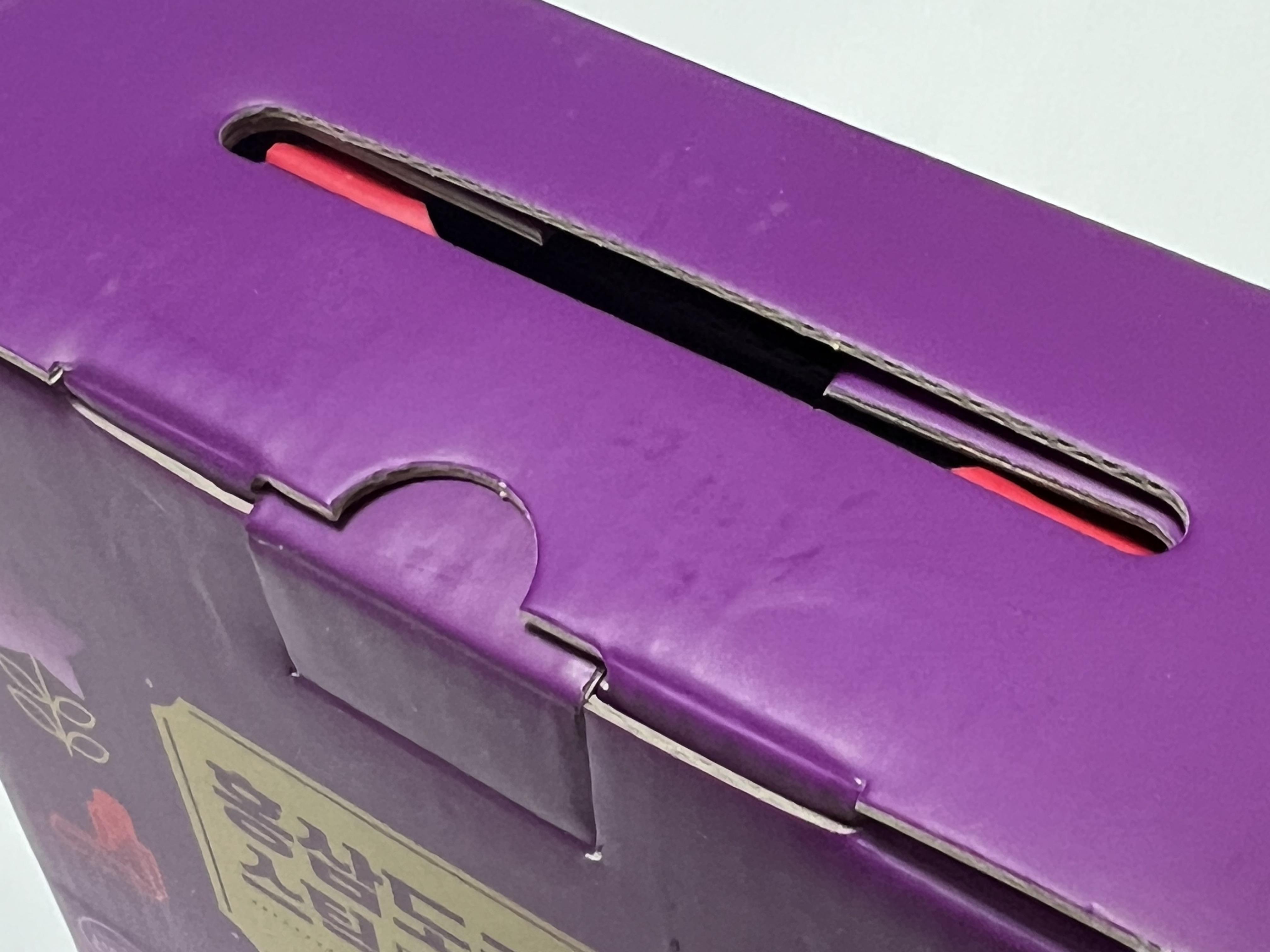 전북인삼농협 홍삼도라지청 스틱 박스의 전면에는 뜯어서 하나씩 빼먹을 수 있는 절취선이 있습니다. 저도 위를 열어 손을 집어넣어 하나씩 빼먹기보다는 이 절취선을 잘라서 빼먹고 있습니다. 꽤나 편하더라고요.
