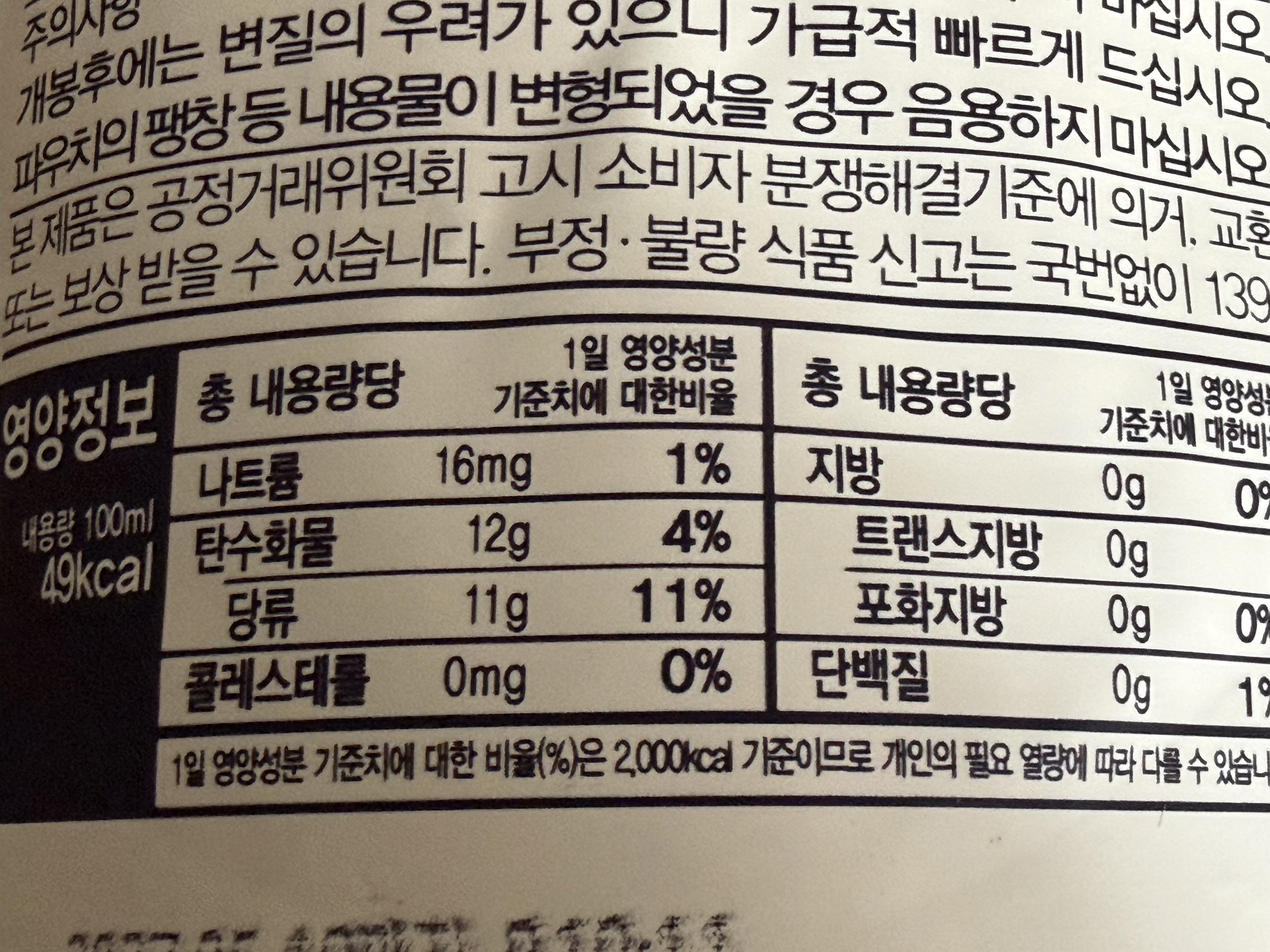 경북햇살농원 영농조합의 통째로 갈아 만든 배즙은 한 봉지에 당류가 11g이 들어 있습니다. 이 정도의 당류는 코카콜라에 들어 있는 당분과 거의 비슷한 수준입니다. 코카콜라 350ml에 37g의 당류가 들어 있으니 거의 차이가 없습니다. 흔히 과일의 당류는 섬유질과 함께 몸에 들어오기 때문에 설탕의 당분보다 흡수가 느리기 때문에 괜찮다고들 하지만 이렇게 과즙으로 마시는 과일의 당류는 섬유질이 거의 제거된 순수 당에 가깝기 때문에 설탕과 큰 차이가 없다고 보는 게 좋을 겁니다. 그러니 빈속에 마시는 것보다는 몸에 어느 정도의 영양분을 넣은 후에 마시는 것이 혈당 스파이크를 피하는 방법일 겁니다.
