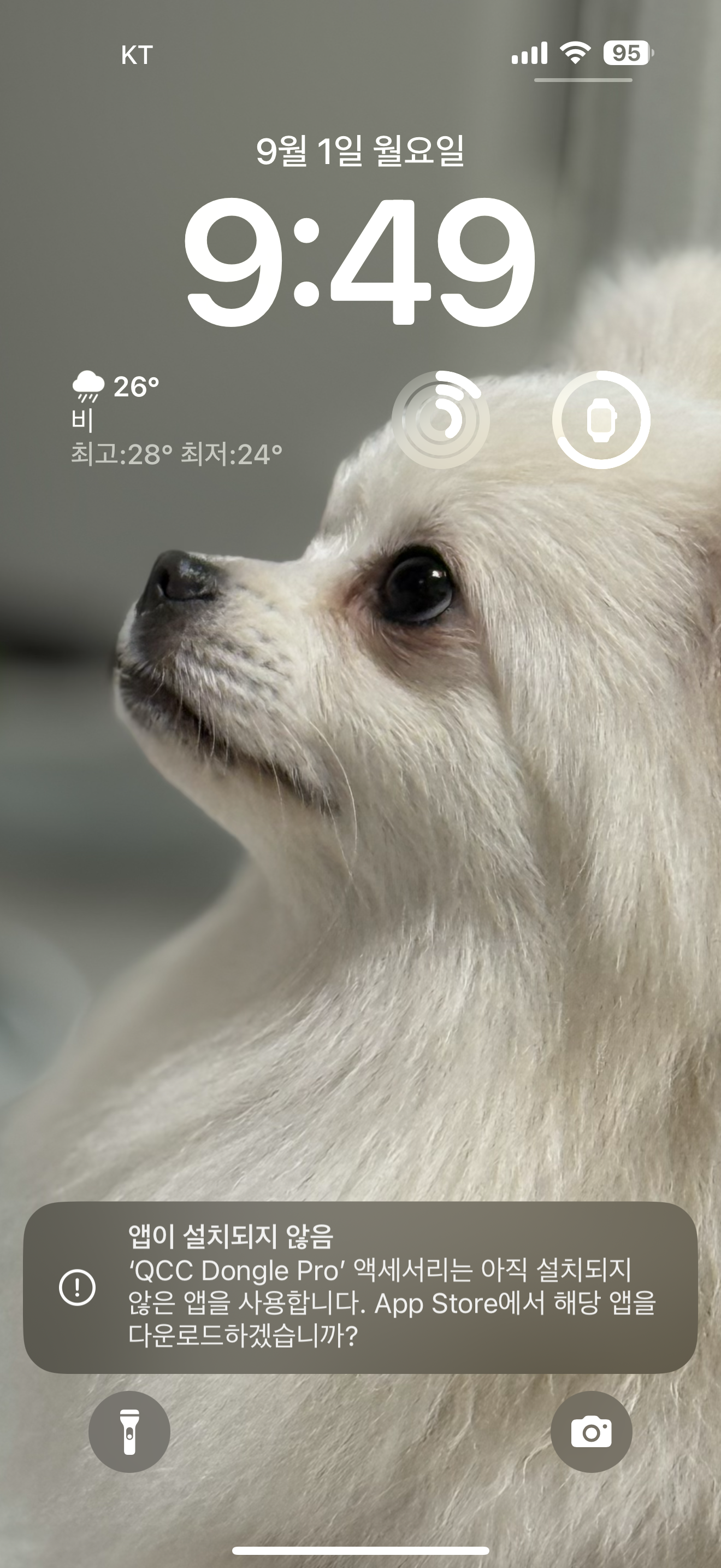 제품 상자 안에는 명함 크기의 간단한 설명서와 보증서, QCC Pro 동글 유닛과 USB A to C 젠더가 들어 있습니다. 앞서 설명드린 대로 제품은 좌우로 긴 형태여서 스마트폰과 연결했을 때 물리적인 간섭을 거의 느끼지 못합니다. 아이폰 16/17 Pro Max에서 투명 케이스를 씌운 상태에서도 이상없이 인식이 되었으며, 주머니에 넣고 다녀도 전혀 문제가 없습니다. 다른 블루투스 동글에서는 경험하지 못한 안정감입니다.