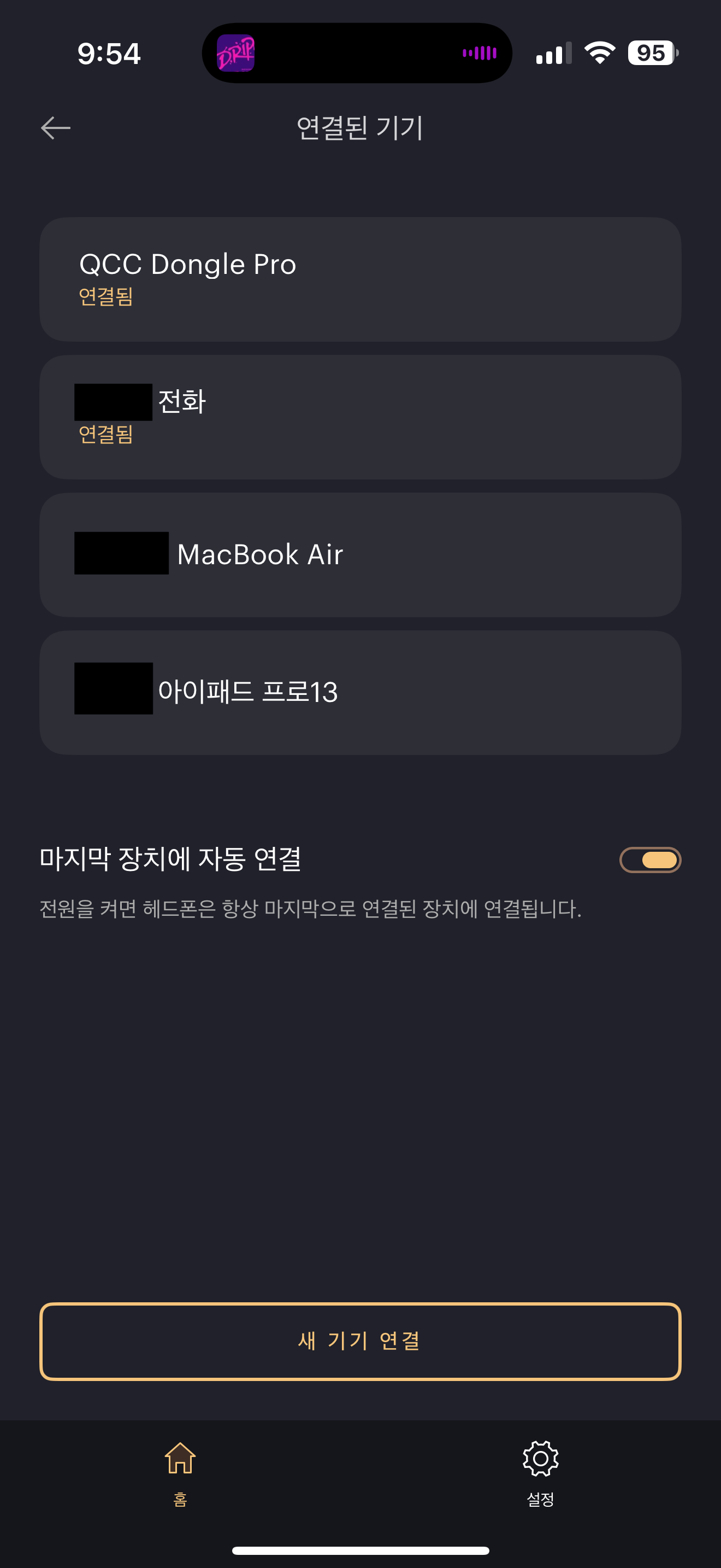 QCC Pro는 최대 10대의 기기까지도 저장해 놓고 수시로 바꿔 가며 페어링을 할 수 있습니다. 저는 지금 Px8 S2, Px7 S2e, P100SE, Space One, Neobuds Planar까지 5대가 연결되어 있습니다.