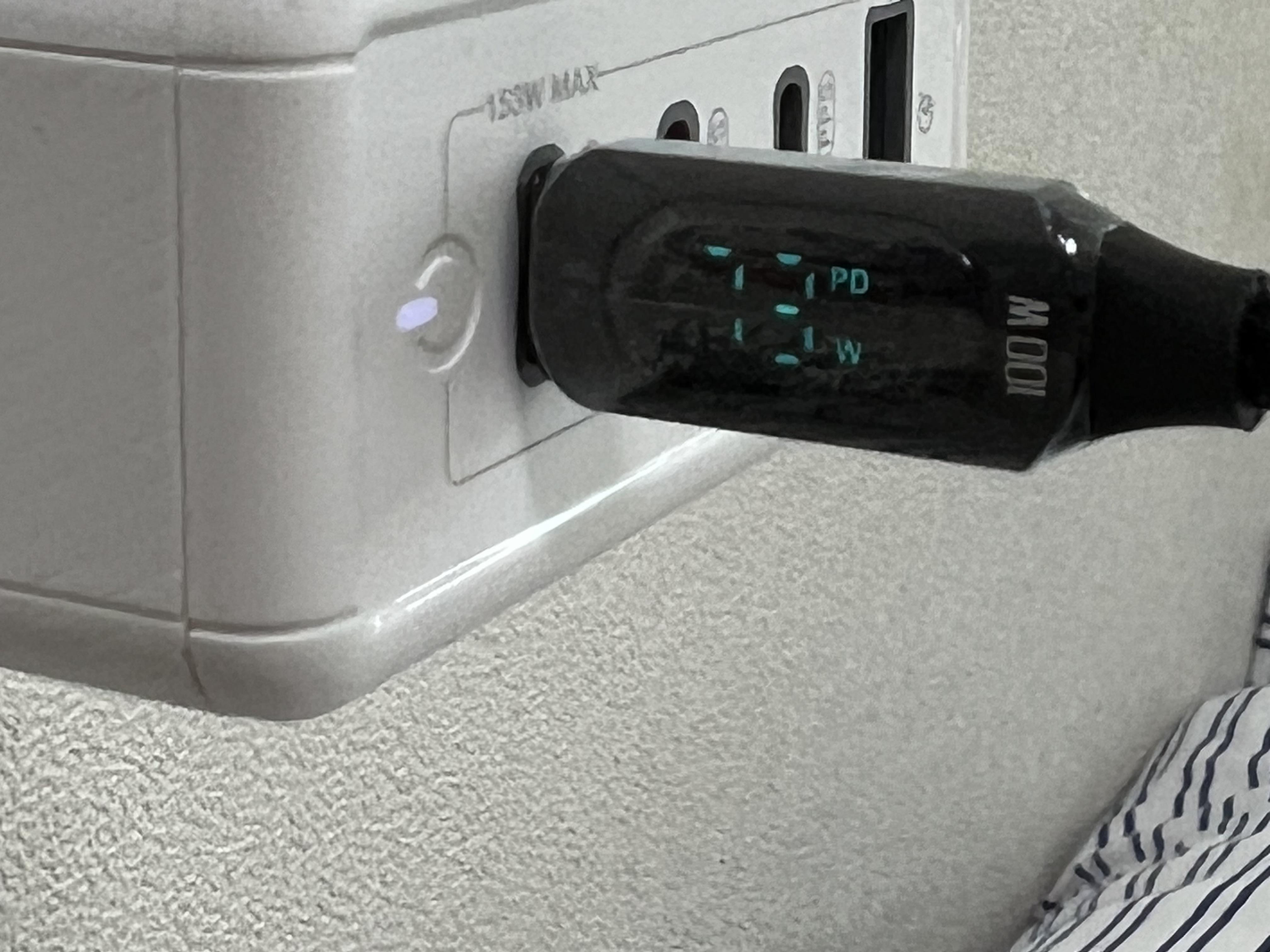전자제품에서 가장 큰 문제이고, 또 가장 큰 문제를 유발시키는 원인이 바로 제품의 발열이라는 점을 보면 4개를 동시에 충전하면서도 과부하는 커녕 여유가 느껴질 정도입니다. 물론 제가 사용하는 제품이 맥북에어M2를 제외하고는 15~20W 수준의 아이폰 2대(아이폰11, 13 Pro)가 가장 큰 용량이고 나머지는 그다지 크지 않은 용량을 가지고 있습니다. 저기 위에 포함시키지는 않았지만 JBL의 휴대용 블루투스 스피커, 10000wh의 보조 배터리 등도 일주일에 한 번 정도 물려서 충전을 하긴 하지만 그럼에도 어지간한 기기 4개를 동시에 물려 봤자 제품의 극한 성능을 끌어내는 건 힘들 것 같습니다.
