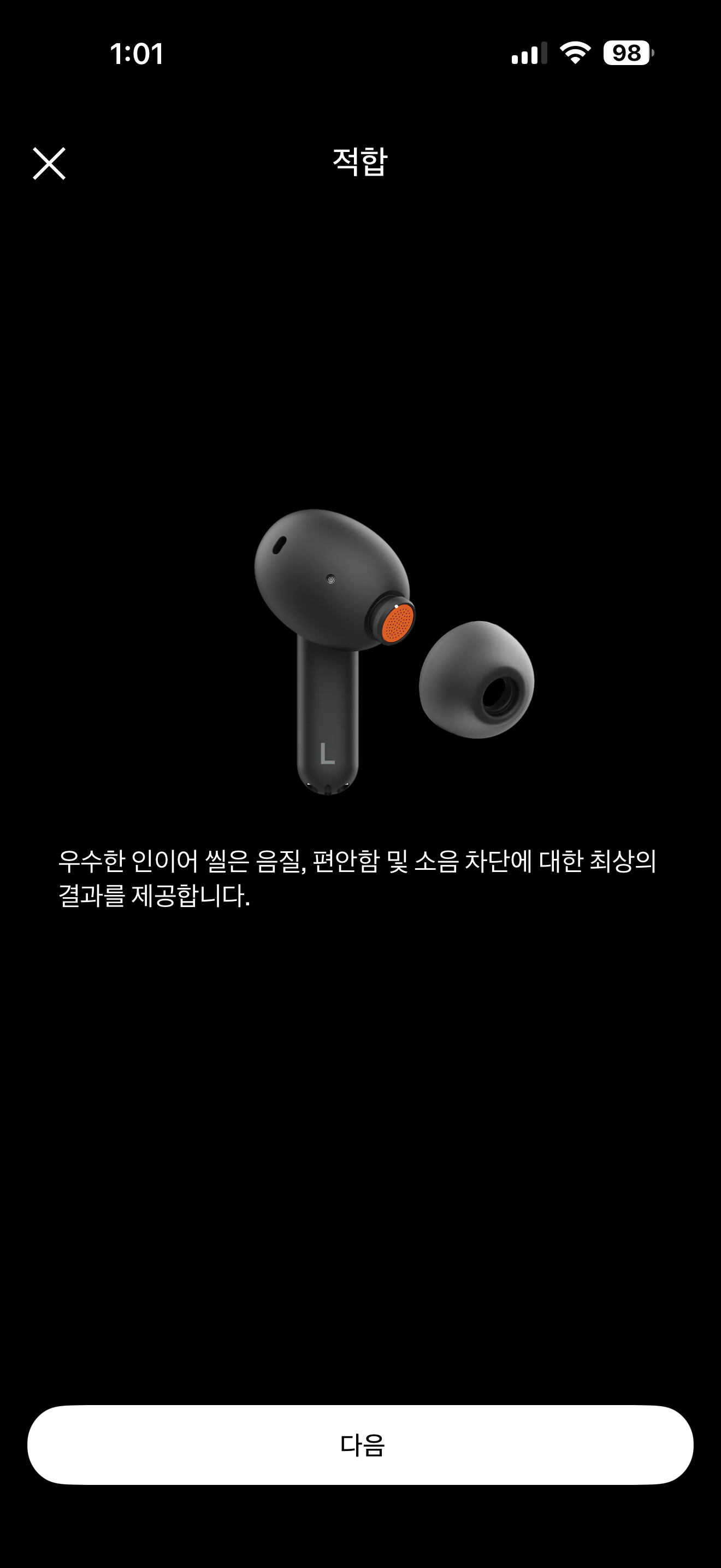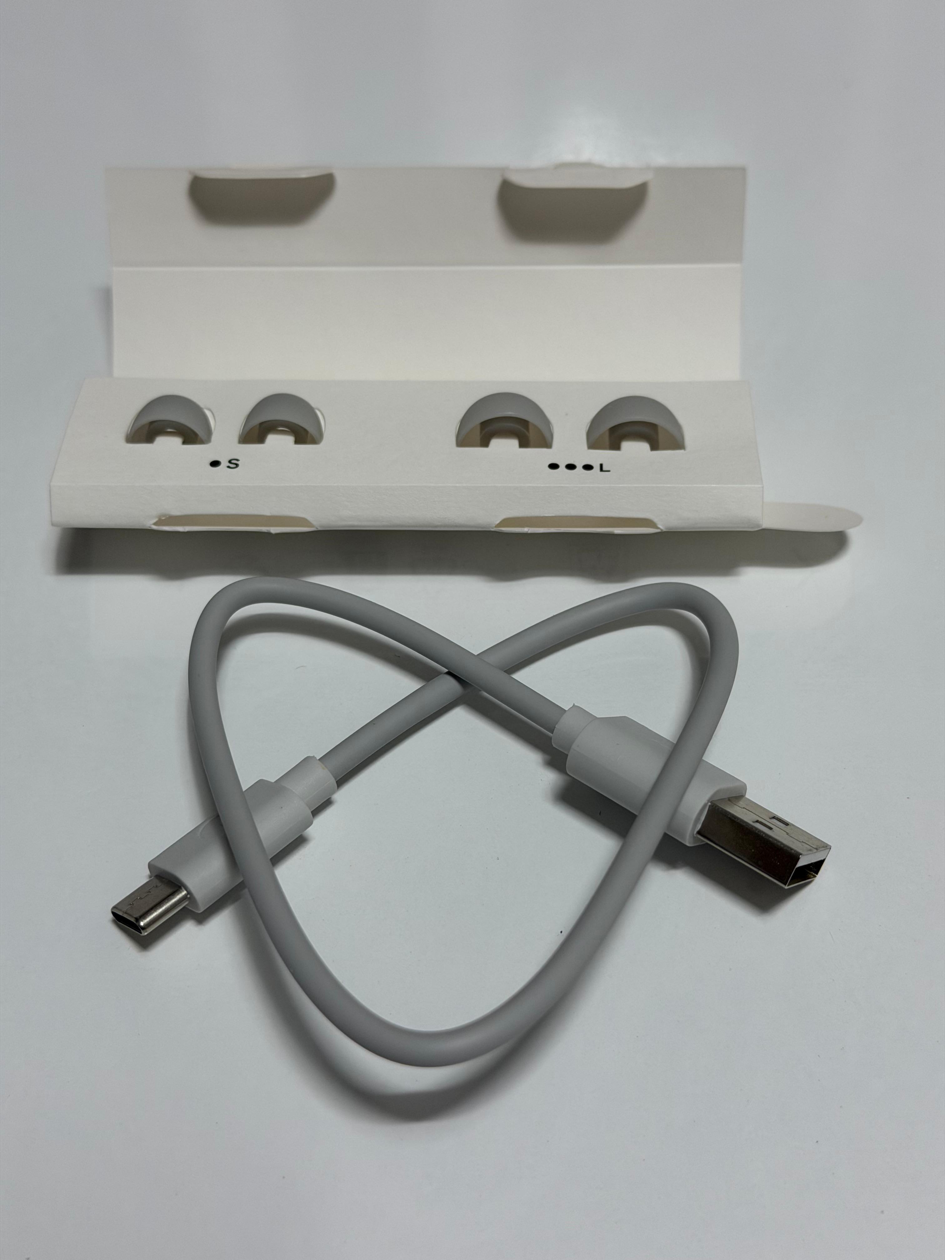 제품 상자 안에는 여분의 제품 설명서, 여분의 이어팁, USB A to C 케이블이 들어 있습니다. 이어팁은 기본 장착된 M 사이즈에 더해 S와 L 사이즈까지 총 3쌍을 제공합니다. 최근 무선 이어폰 제품들이 점점 이어팁 사이즈를 세분화해서 최대 5종까지도 제공하는 것에 비해서는 다소 아쉽다는 생각이 듭니다. 정확한 사이즈를 가진 이어팁으로 들어야 착용감과 노이즈캔슬링에서 만족감이 더 강해질 텐데 하는 아쉬움 때문입니다. 물론 저의 귀에는 A100에서 제공하는 이어팁으로도 착용감은 만족스러웠지만 그렇지 못한 분들도 분명 꽤 될 것 같습니다.