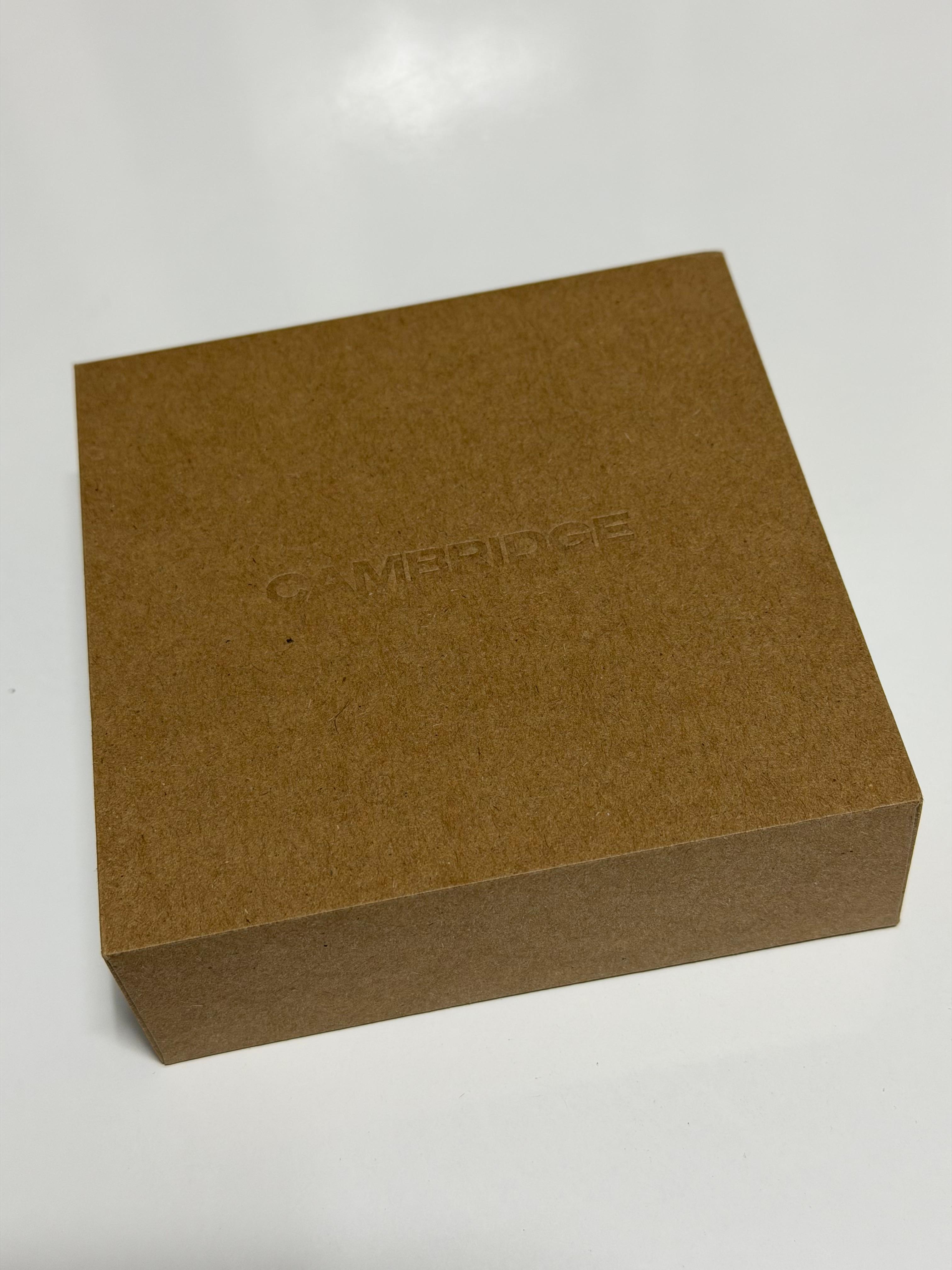 띠지를 벗기면 상자 겉면에 캠브리지 오디오 회사 이름이 음각으로 새긴 것을 볼 수 있습니다. 캠브리지오디오는 P100SE에서도 그렇고 음각을 상당히 좋아하는 것 같습니다. 상자나 캐링 케이스에 음악을 새기는 것(디보싱)은 제품을 고급스럽고 차분하게 보이는 장점이 있습니다.