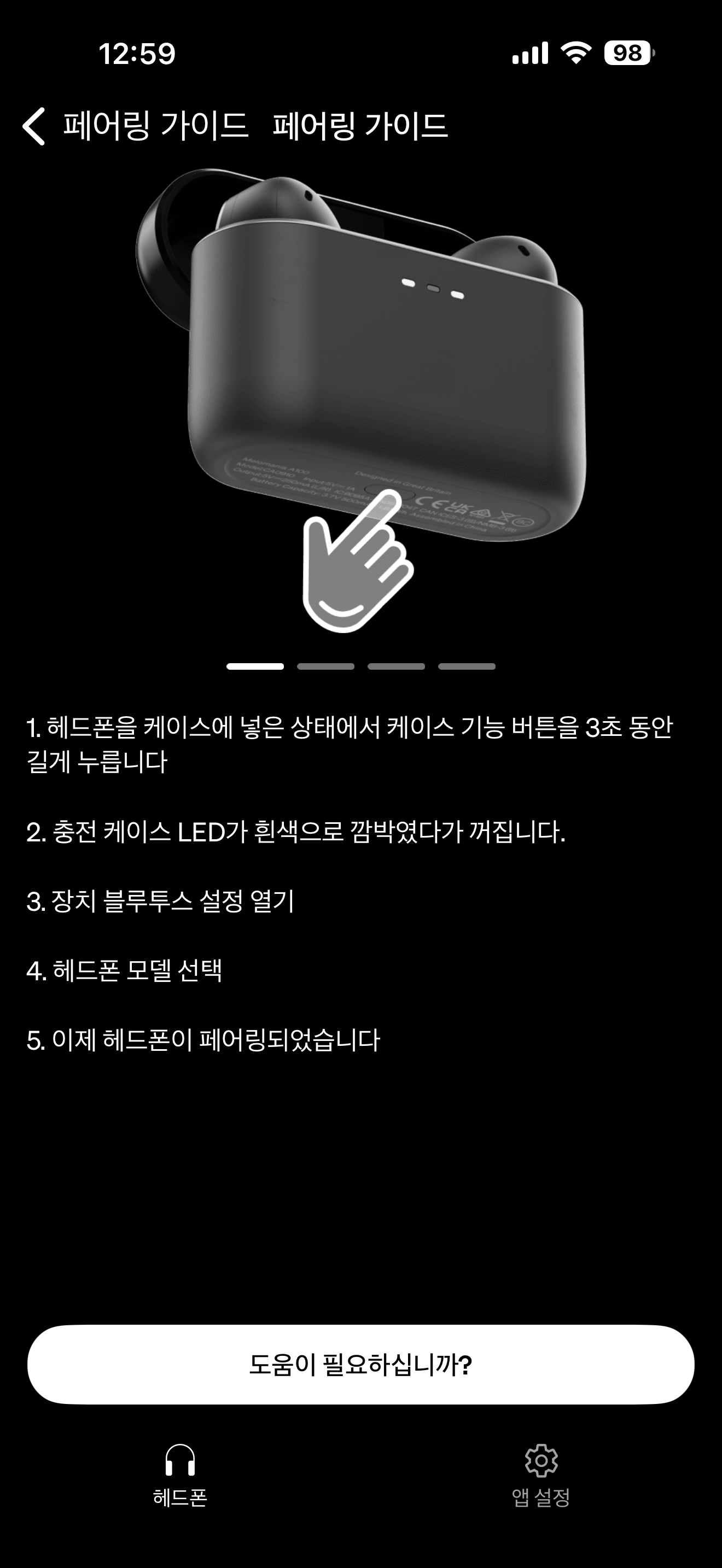 A100의 앱은 P100SE와 동일한 것을 사용합니다. 케이스를 연 채로 앱을 실행하면 앱에서 자동으로 페어링할 제품을 검색하기 시작합니다. 그 이후로 시키는 대로 하면 앱을 설치하고, 제품을 인식시키는 데는 큰 불편함이나 어려움은 없이 일사천리로 진행이 됩니다. 오디오 전문 회사에서 만든 앱치고는 너무 만족스럽습니다. 제가 사용한 음향 전문 기기의 앱은 제품 설치에서부터 기능성, 사용성, 안전성에서 어느 하나 결함이 없는 것이 없었는데 그 중 캠브리지오디오의 앱은 상당히 인상적입니다.