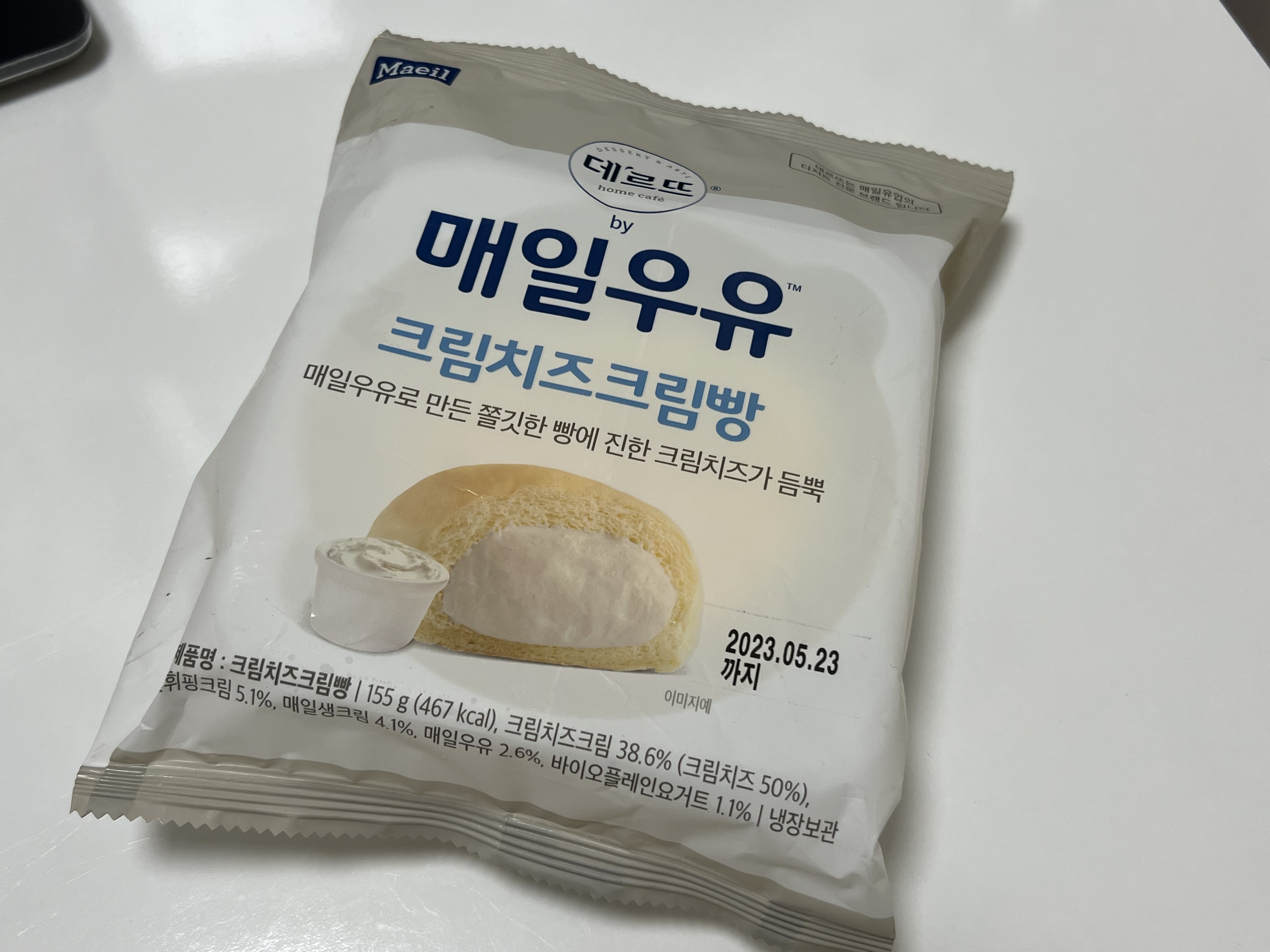 데르뜨 by 매일우유 크림치즈크림빵은 허여멀건합니다. 다른 생크림빵이 그래도 빵의 비주얼로도 잘 구워진 것 같이 보이는 것에 비해 이 빵은 크림빵이라는 것을 보여주기라도 하려는지 빵 색깔도 치즈크림색입니다.
