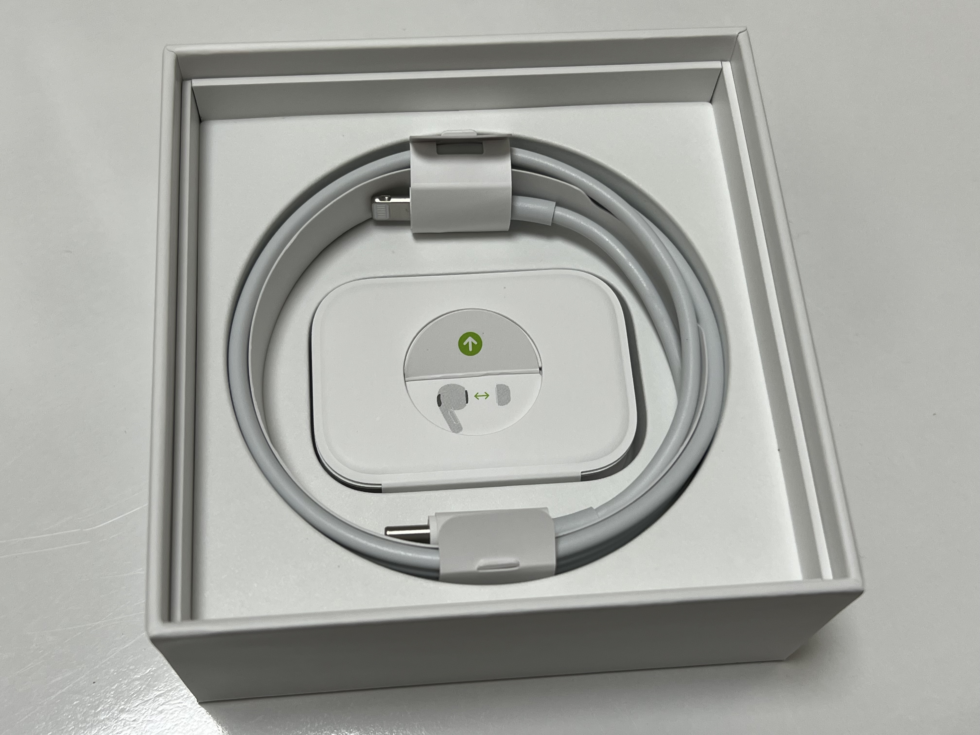 박스 뚜껑을 제거하면 설명서가 들어 있습니다. 설명서를 들어내면 비로소 에어팟 프로 2의 본체가 들어 있습니다. 제품 패키지는 참 한결 같습니다. 무엇보다도 간결하고 군더더기가 없어서 좋습니다.