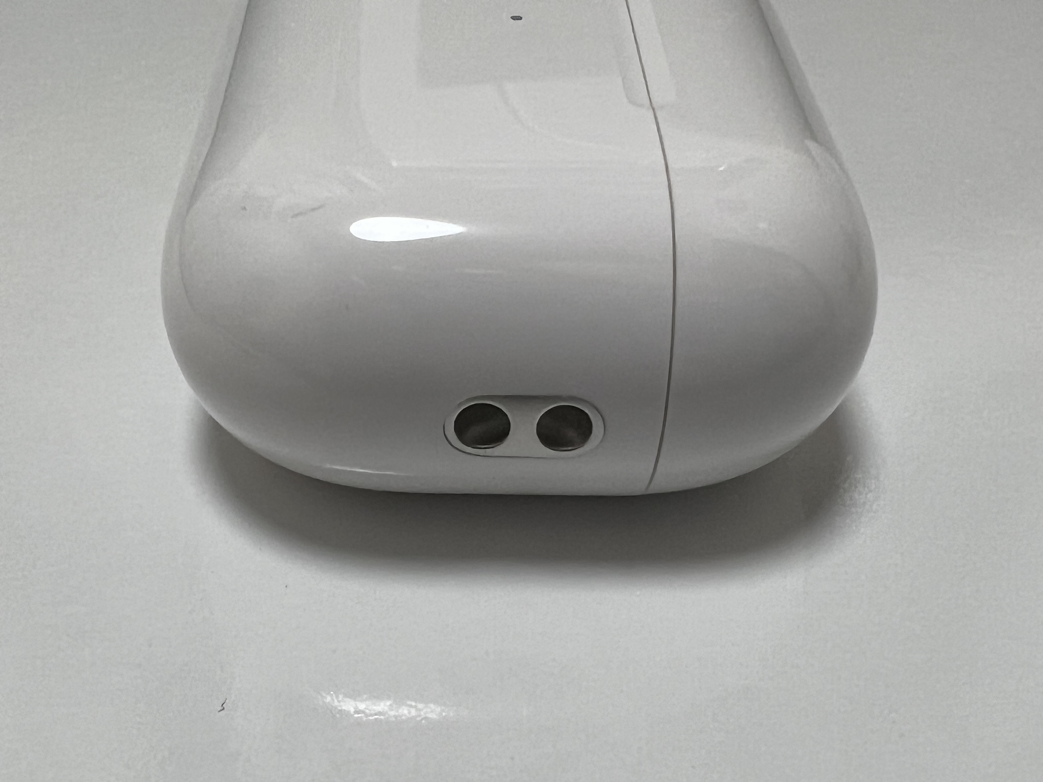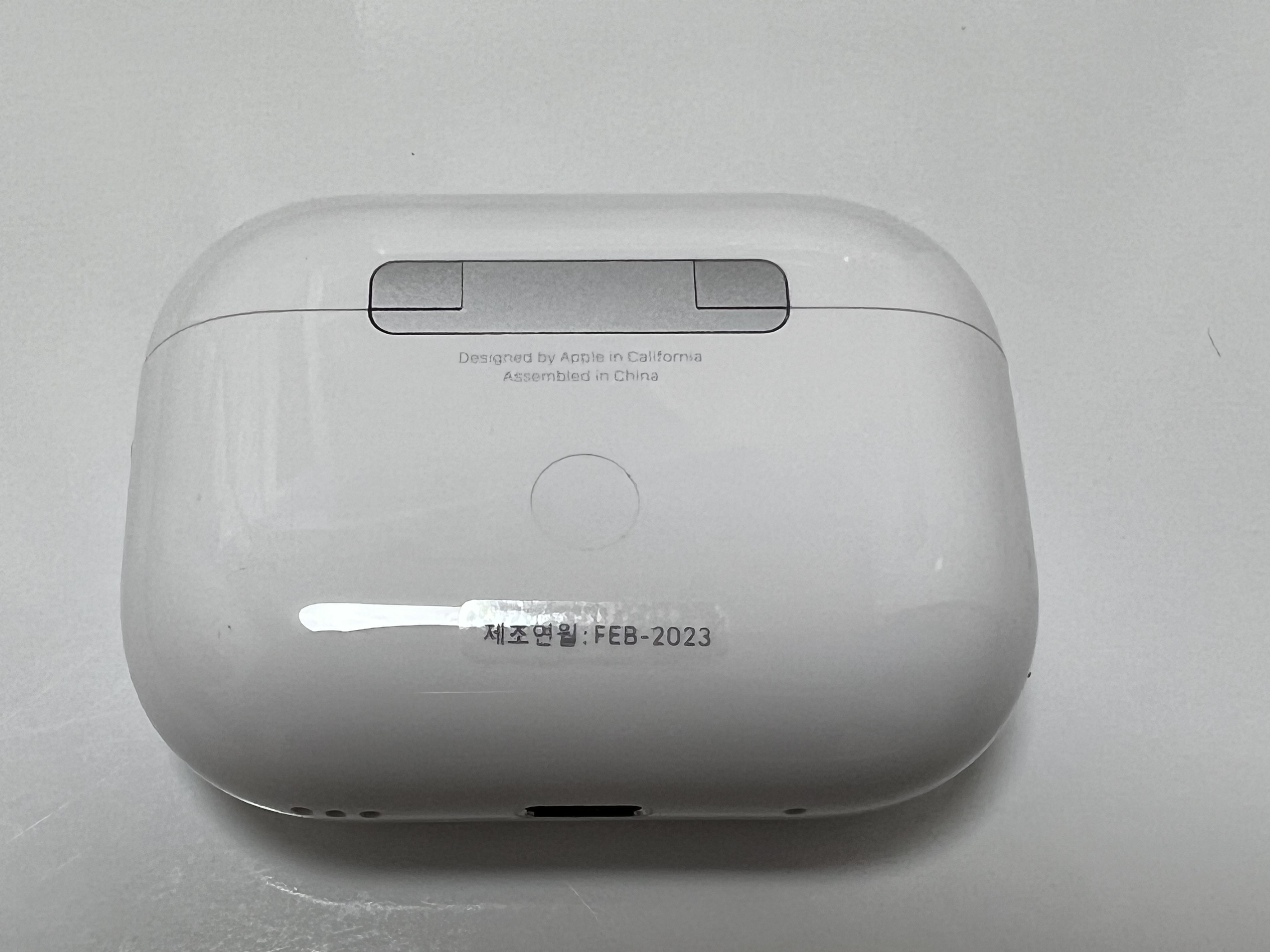 뒷면에는 한 번도 사용한 적이 없긴 하지만 페어링 버튼이 있고, 제조연월이 표기되어 있습니다. 에어팟 시리즈의 경우 별도의 페어링 과정 없이 에어팟 본체의 뚜껑을 딱 열면 자동으로 아이폰에서 페어링이 되고, 아이폰에서 페어링이 된 후에는 맥북에어를 비롯한 다른 기기에서도 바로 자동 페어링이 되기 때문에 페어링 버튼을 쓸 일이 없더라고요. 당연히 무선 충전도 지원이 됩니다.