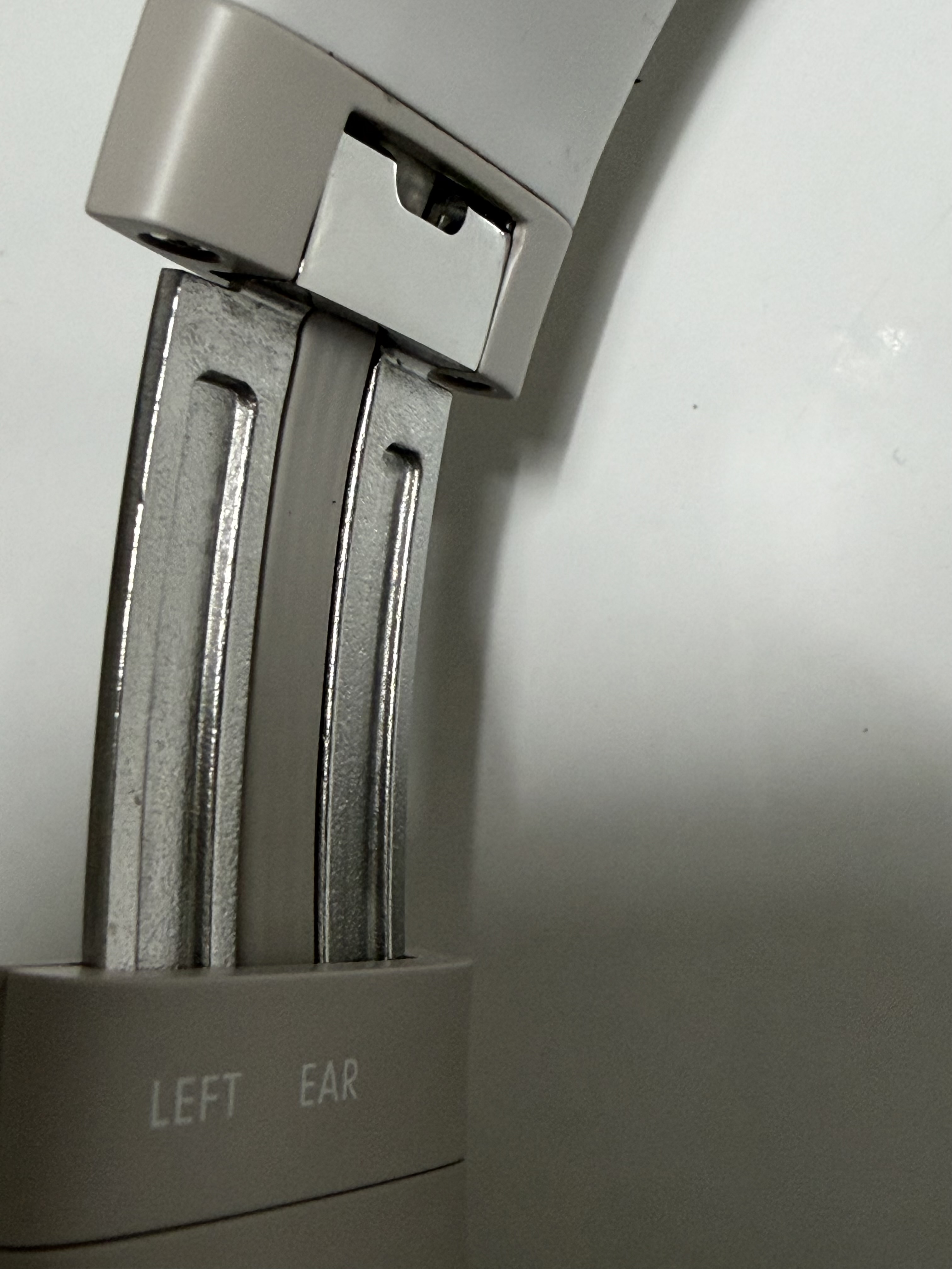 헤어밴드는 꽤 길게 뽑을 수 있습니다. 하지만 돌아가지 않기 때문에 그 부분은 참고를 해야 합니다. 그리고 헤드폰의 좌우 표기가 왼쪽에만 LEFT EAR 라고 작게 써진 부분 외에는 없기 때문에 오른쪽의 전원 버튼 정도를 확인해야 하고, 저처럼 나이 먹은 사람은 보이지도 않습니다. 헤드폰 이어컵 내부의 천이 꽤 큰 사이즈인데 거기는 왜 놀리는 건지 모르겠습니다. 굉장히 성의가 없다고 느껴졌습니다.