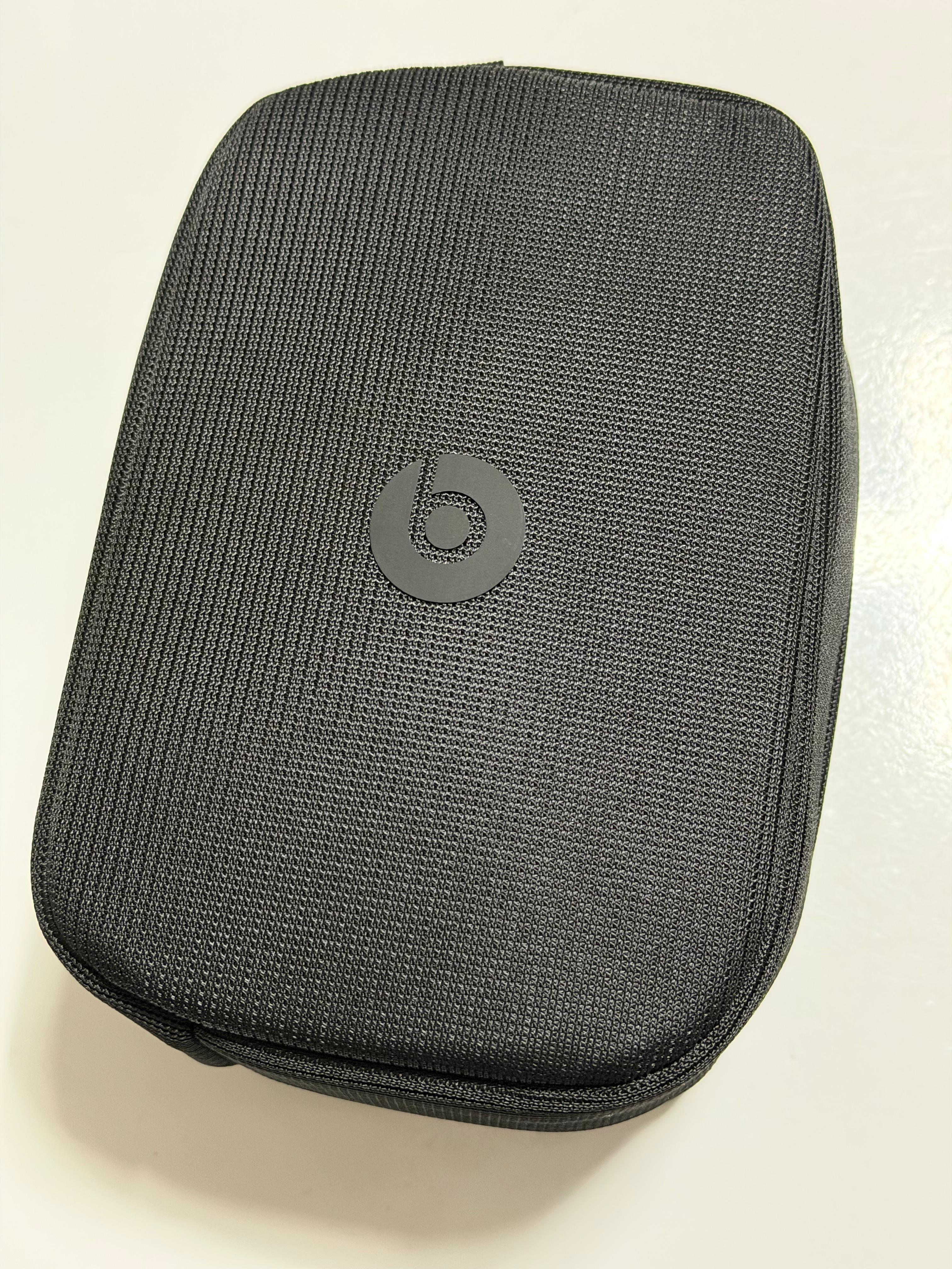 애플 비츠 스튜디오 프로의 캐링 케이스는 다른 제품들과 달리 소프트 직물 재질입니다. 다른 제품들이 하드 케이스를 제공하는 것과 다른 모습이어서 재밌네요. 케이스 전면에는 비츠 로고가 디자인되어 있습니다. 힙 하네요. 과연 들고 다닐 사람이 얼마나 될지는 모르겠습니다.
