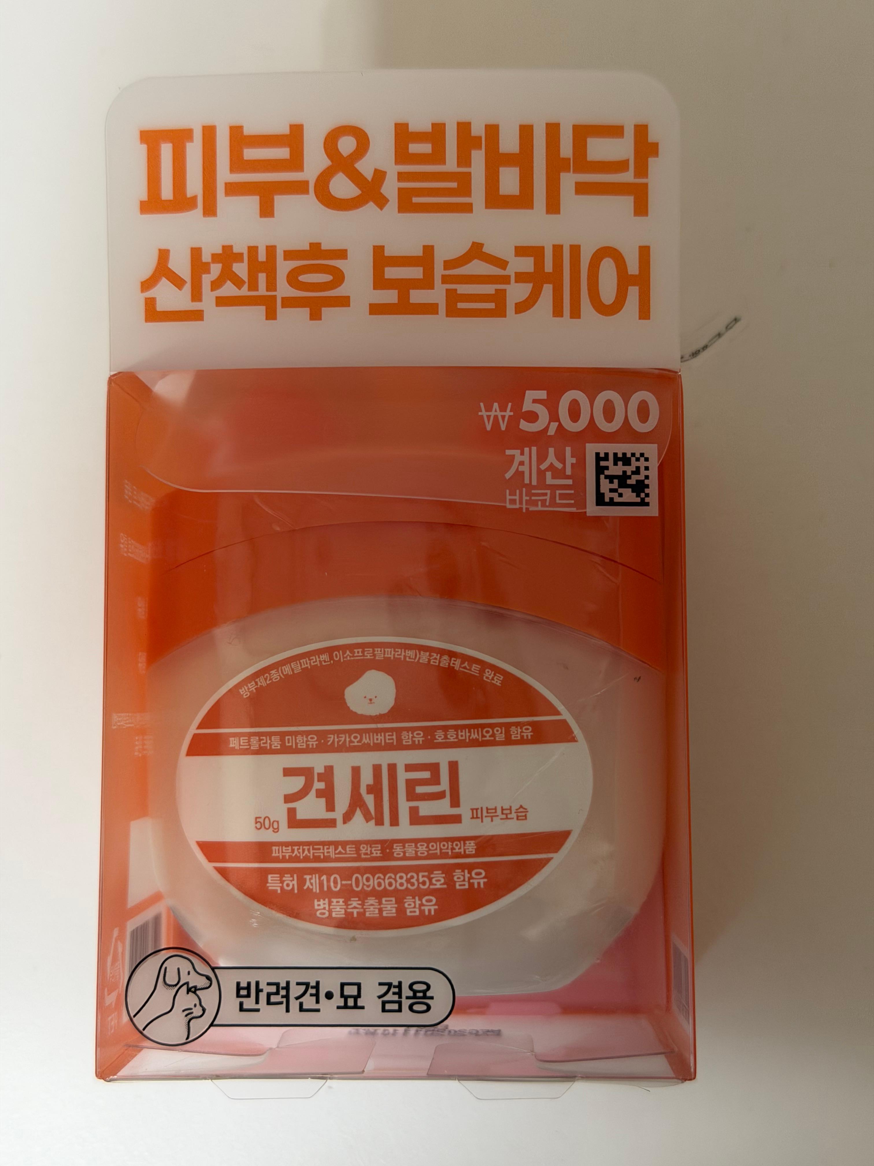 다이소 견세린은 5천 원으로 구입할 수 있는 강아지, 고양이 풋크림입니다. 도시 생활을 하면서 흙이 아닌 시멘트와 아스팔트를 밟으며 산책을 하는 강아지의 발바닥은 관리를 안 해 주면 딱딱해져서 갈라지고 피가 나기도 합니다. 양말과 신발을 신을 수 있는 사람과 달리 강아지들에게는 별 다른 조치를 해 줄 수가 없기 때문에 평소에 관리를 해 주는 것이 중요합니다.