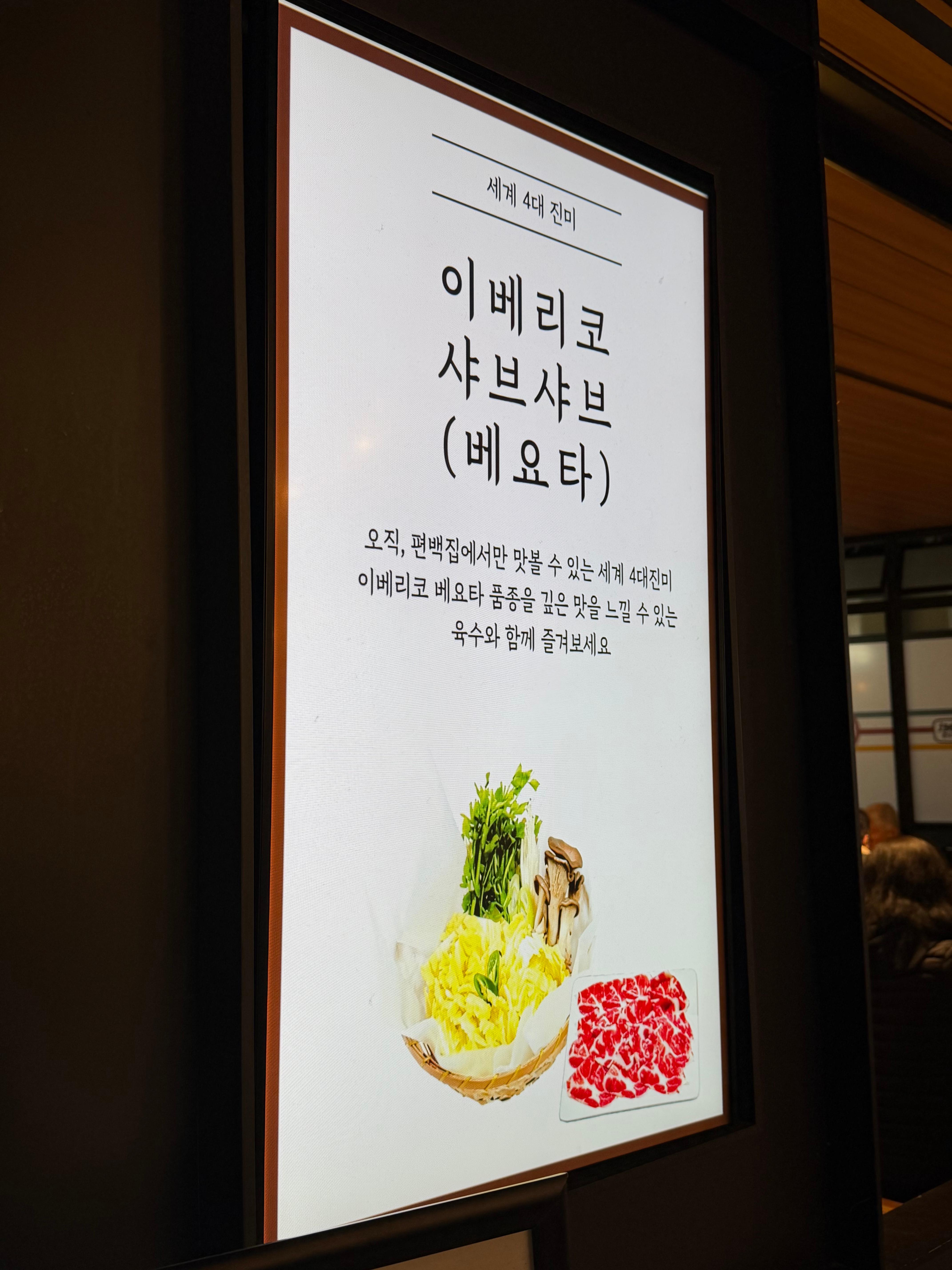 한 때 용산에서 근무를 했었지만 정작 용산 아이파크몰에 있는 식당가에는 간 지가 거의 15년도 넘은 것 같은 느낌입니다. 아무래도 직장인이다 보니 한 끼를 먹어도 조금이라도 저렴한 곳을 찾기 마련이어서 아이파크몰의 7층은 거의 찾지 않았습니다. 하지만 맥북 네오 실물 영접을 위해 용산 아이파크몰의 프리스비 매장을 둘러 본 후 한 층을 더 올라가 편백집이라는 샤브 전문점에 갔습니다. 여자친구는 이미 한 번 와 본 적이 있던 곳이고, 추천을 하길래 함께 가 봤습니다.