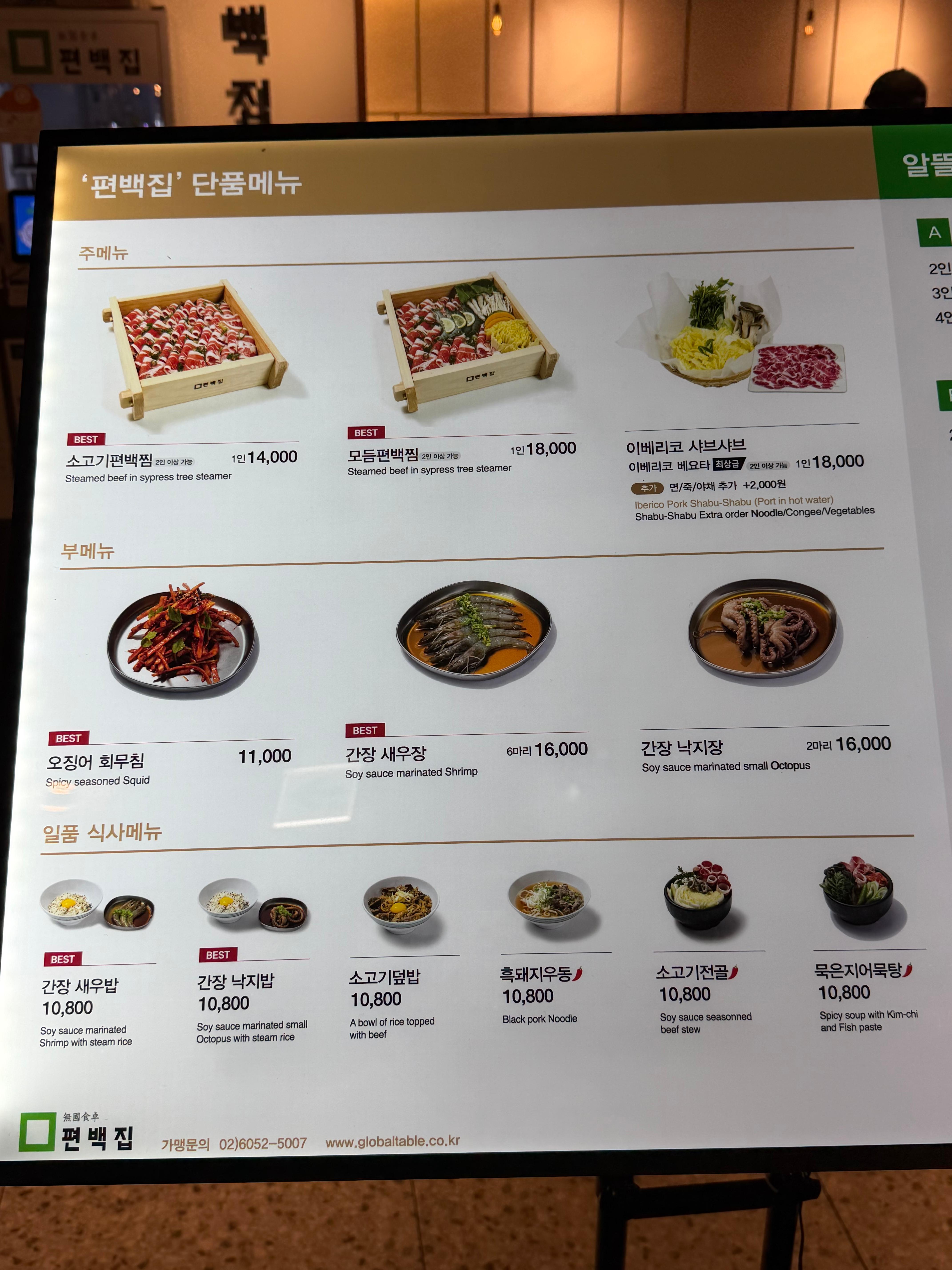 용산역 아이파크몰 7층에 위치한 편백집은 샤브샤브와 찜 요리 전문점입니다. 가격은 객관적으로 저렴하다고 할 수는 없지만, 짜장면 한 그릇에 9천 원, 짬뽕 한 그릇에 1만 원을 훌쩍 넘는 2026년의 가격을 기준으로는 딱히 비싸다고는 할 수 없습니다. 게다가 땅값 비싸기로 유명한 용산, 그 중에서도 아이파크몰의 식당가에 위치해 있다면 이 정도 가격은 충분히 납득 가능합니다.
