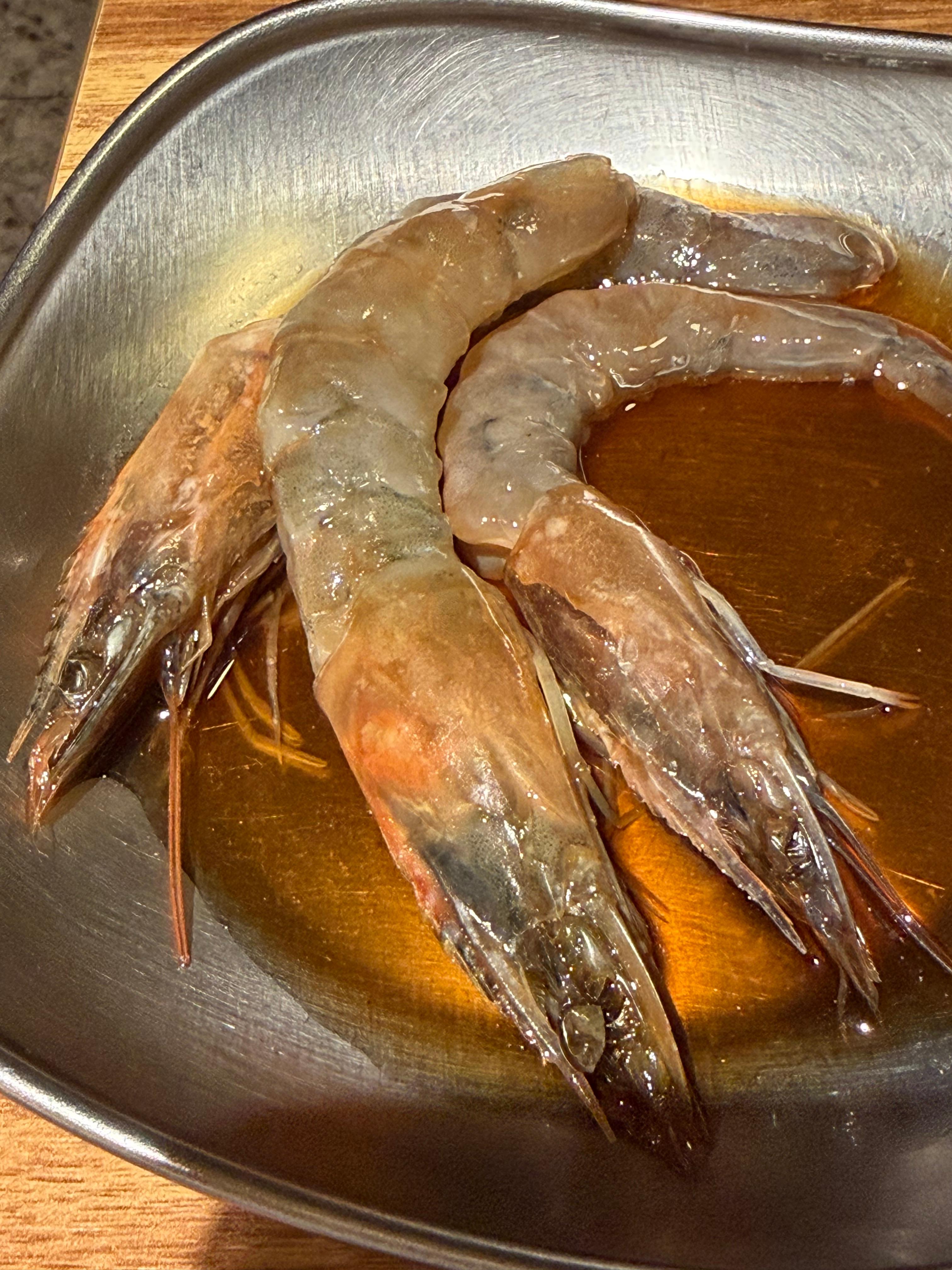 근데 2명이 갔는데 새우를 3 마리만 주시다니 이건 너무한 거 아닙니까. 둘이 새우 한 마리 두고 눈치게임이라도 하라는 건지, 결투라도 하라는 건지.... 여자친구 앞에 두고 선빵필승을 외칠 뻔 했습니다. 다행히 여자친구가 자연스럽게 2 마리 먹으면서 평화적으로 해결했습니다. 평화는 압도적 무력으로 지키는 거라 했습니다.