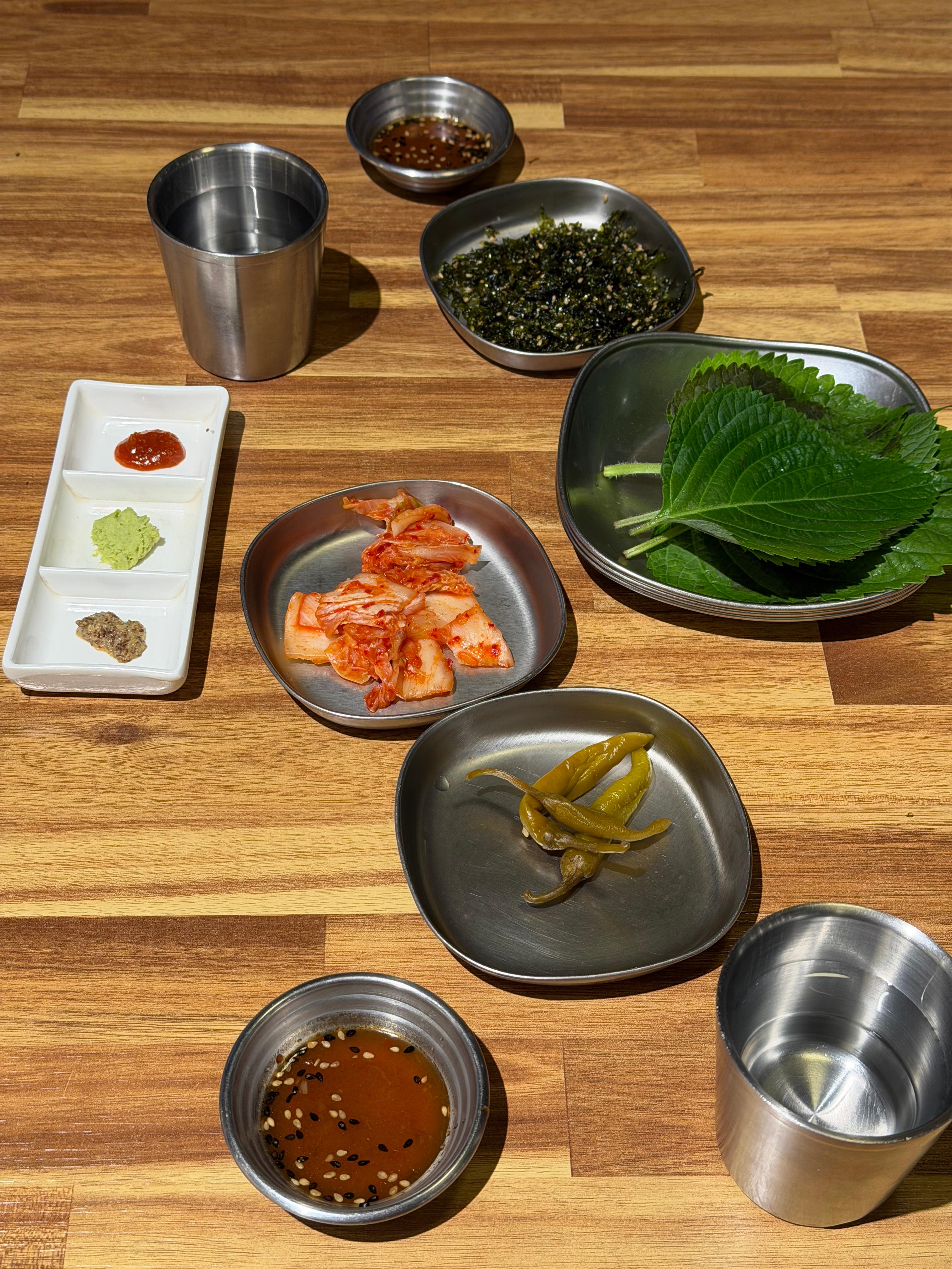 자리에 앉으면 바로 밑반찬이 나옵니다. 밑반찬은 양이 그리 많지는 않습니다. 물론 부족하면 "반찬 좀 더 주세요" 할 수는 있으니 반찬이 적은 건 별 문젠 아닐 겁니다. 심지어 저와 여자친구는 저 반찬(소스)도 남겼습니다.