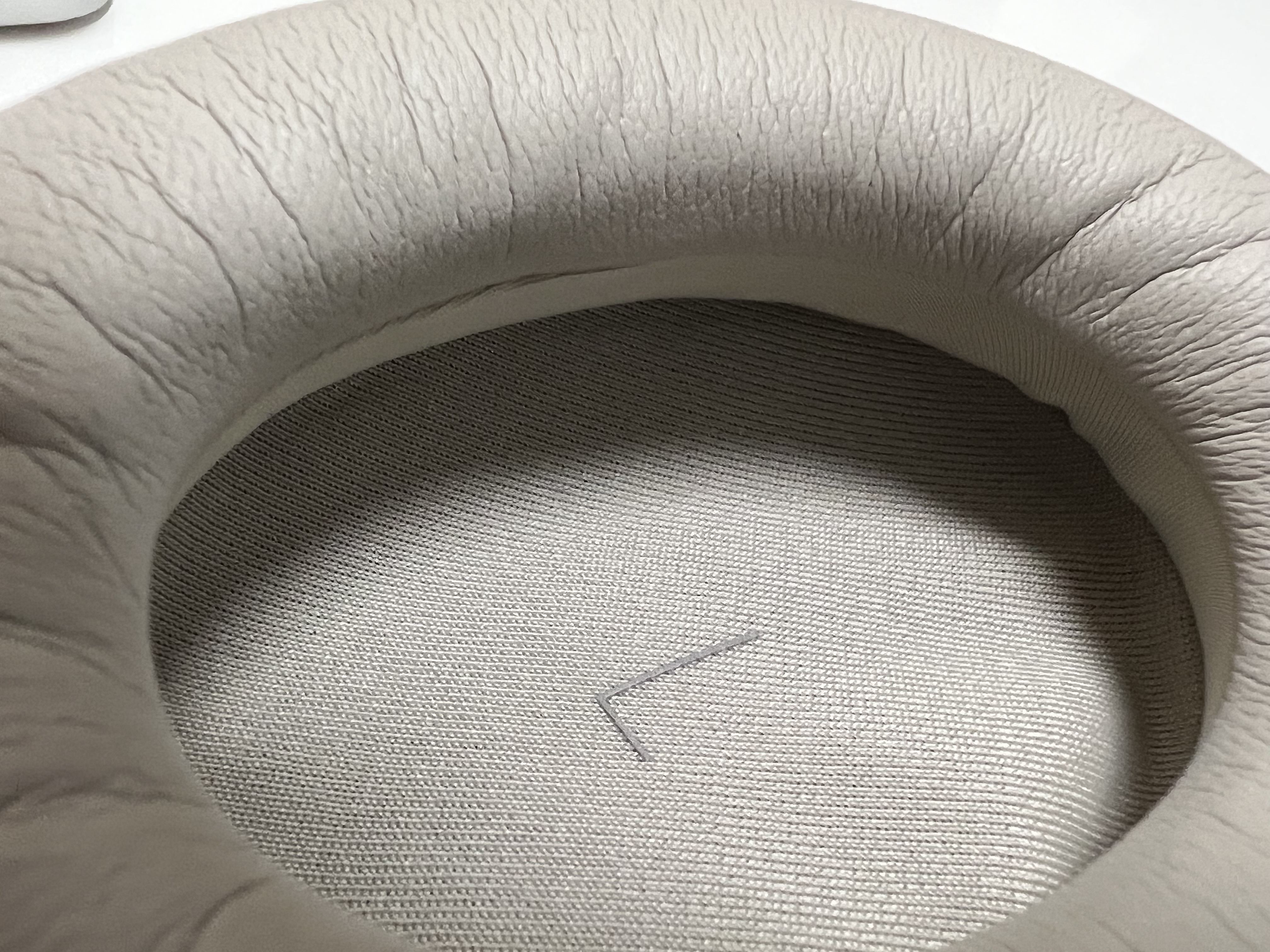 이어컵 내부는 보스 제품과 마찬가지로 경사가 져 있습니다. 귀 앞쪽은 이어컵 공간에 바짝 붙어 있고, 귀 뒤쪽은 이어컵 공간에 널찍하게 떨어져 있습니다. 이건 아마도 귀의 모양을 감안한 설계가 아닌가 싶습니다. 귀는 아무래도 정면에서 보면 뒤로 완전히 붙어 있는 게 아니라 약간 비스듬하게 대각선으로 붙어 있으니까요. 그래서 평면 헤드폰의 경우는 소리가 귀 앞쪽에서 들리는 소리와 귀 뒤쪽에서 들리는 소리가 약간은 시차가 생길 수도 있고 공간감에도 차이를 느끼게 될 수도 있으니 귀 앞쪽과 뒤쪽의 공간감을 비슷하게 맞추기 위해서 헤드폰과 귀의 평면도를 위에서 내려 봤다고 가정하면 이 대각선 모양이 귀의 방향, \| 수직 모양이 헤드폰의 이어컵 패드겠지요. 이렇게 앞과 뒤의 거리감이 달라지니까 \\ 이렇게 이어컵 방향을 뒤틀어서 거리를 맞춘 것이 아닐까 추측해 봅니다. 실제 소리에 어떤 영향을 주는지와는 별개로 말이죠.