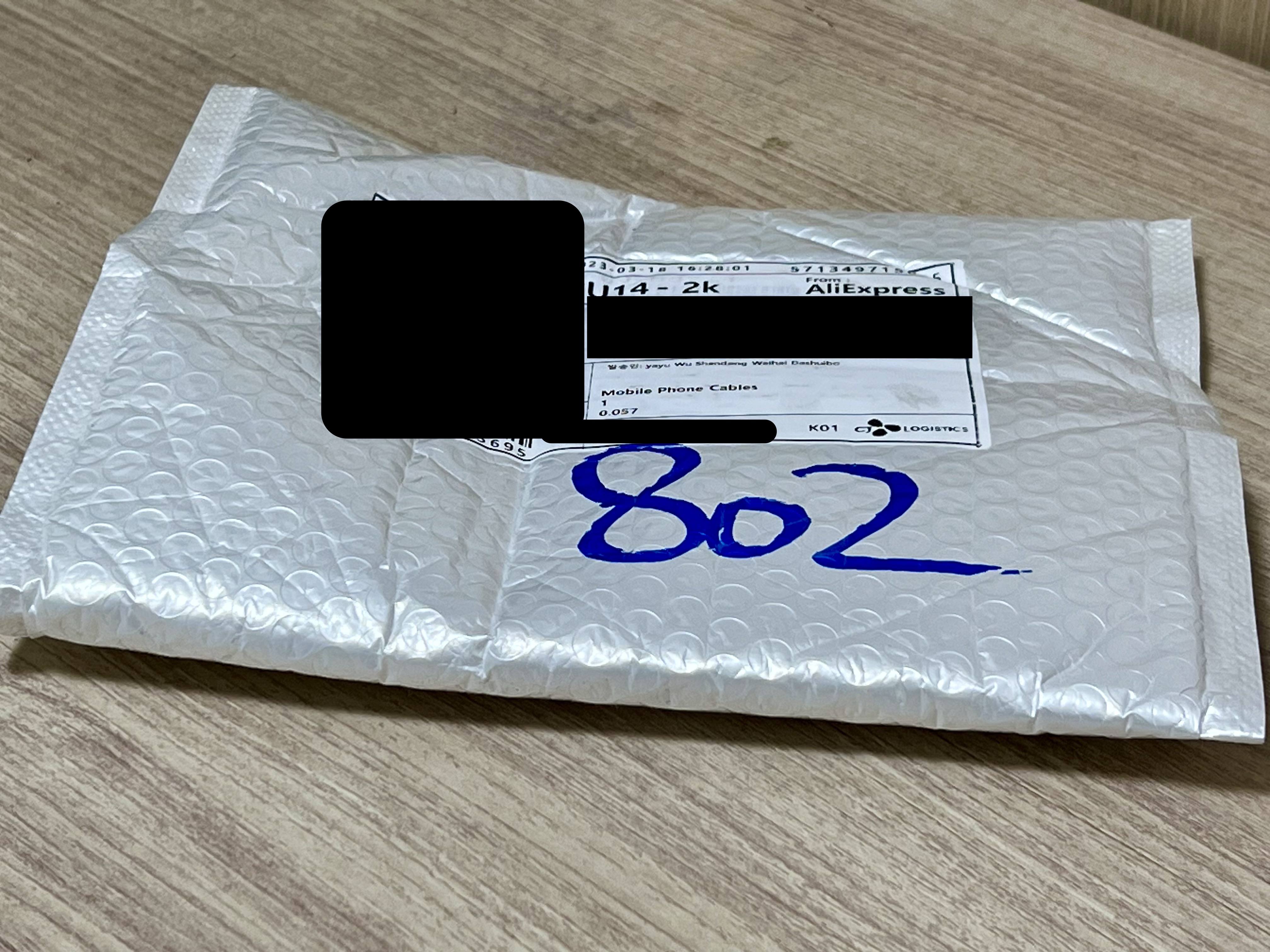 제품의 포장은 에어캡 재질의 비닐로 포장이 되어 있습니다. 포장지의 입구는 굉장히 강력한 접착제로 발라져 있어서 배송중에 분실 또는 누군가 임의로 개봉하고 닫기는 굉장히 힘들 것 같았습니다. 중국에서 무려 5일 만에 넘어 온 녀석입니다.
