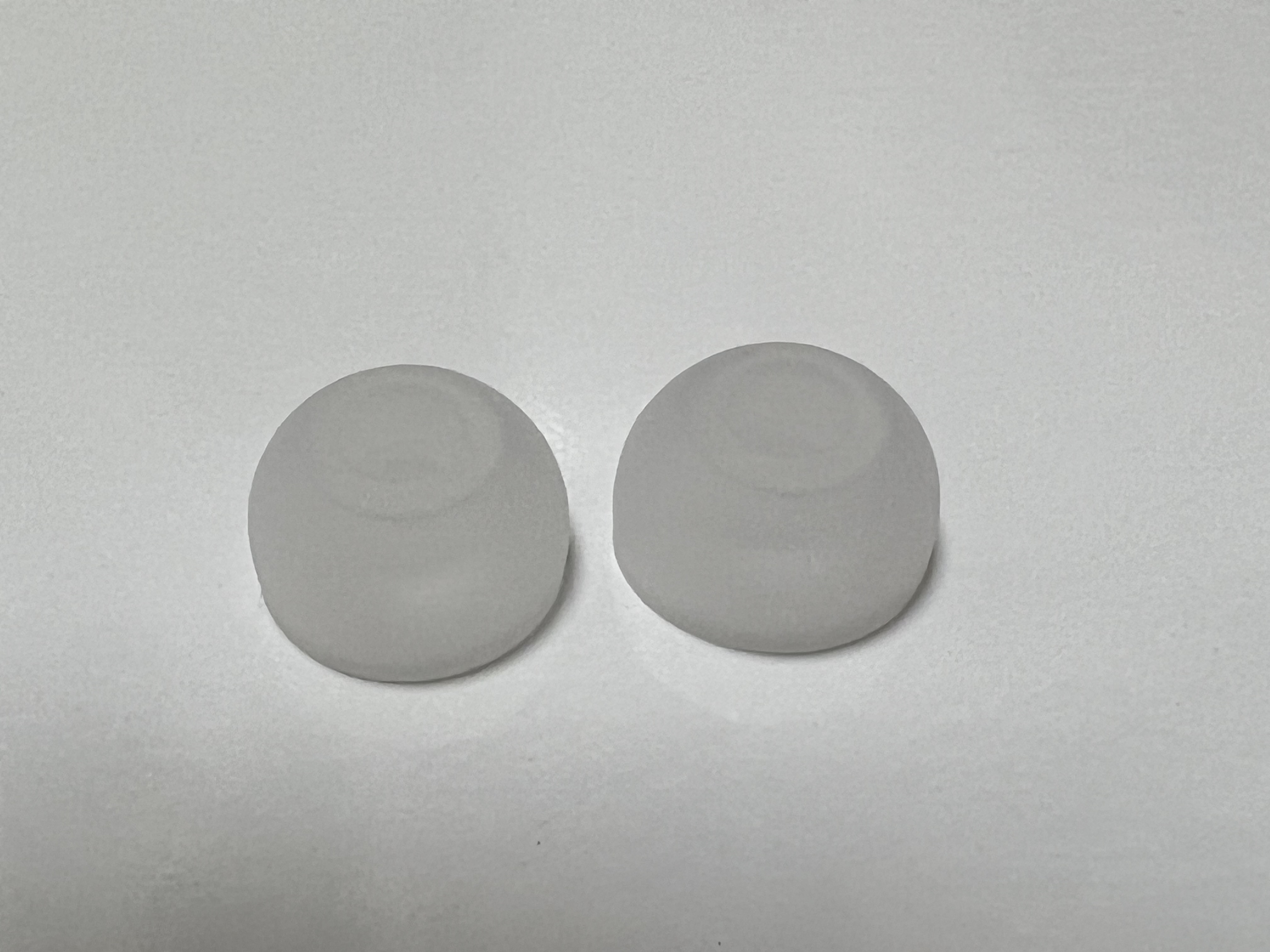ML 사이즈의 벨벳과 M 사이즈의 에어팟 프로2 기본 이어팁의 비교라 정확하진 않지만 벨벳 이어팁이 폭은 넓고, 높이는 낮습니다. 그도 그럴 것이 에어팟 프로2 기본 이어팁은 플라스틱 어댑터가 내장되어 있기 때문에 높이는 다소 높아질 수밖에 없습니다.