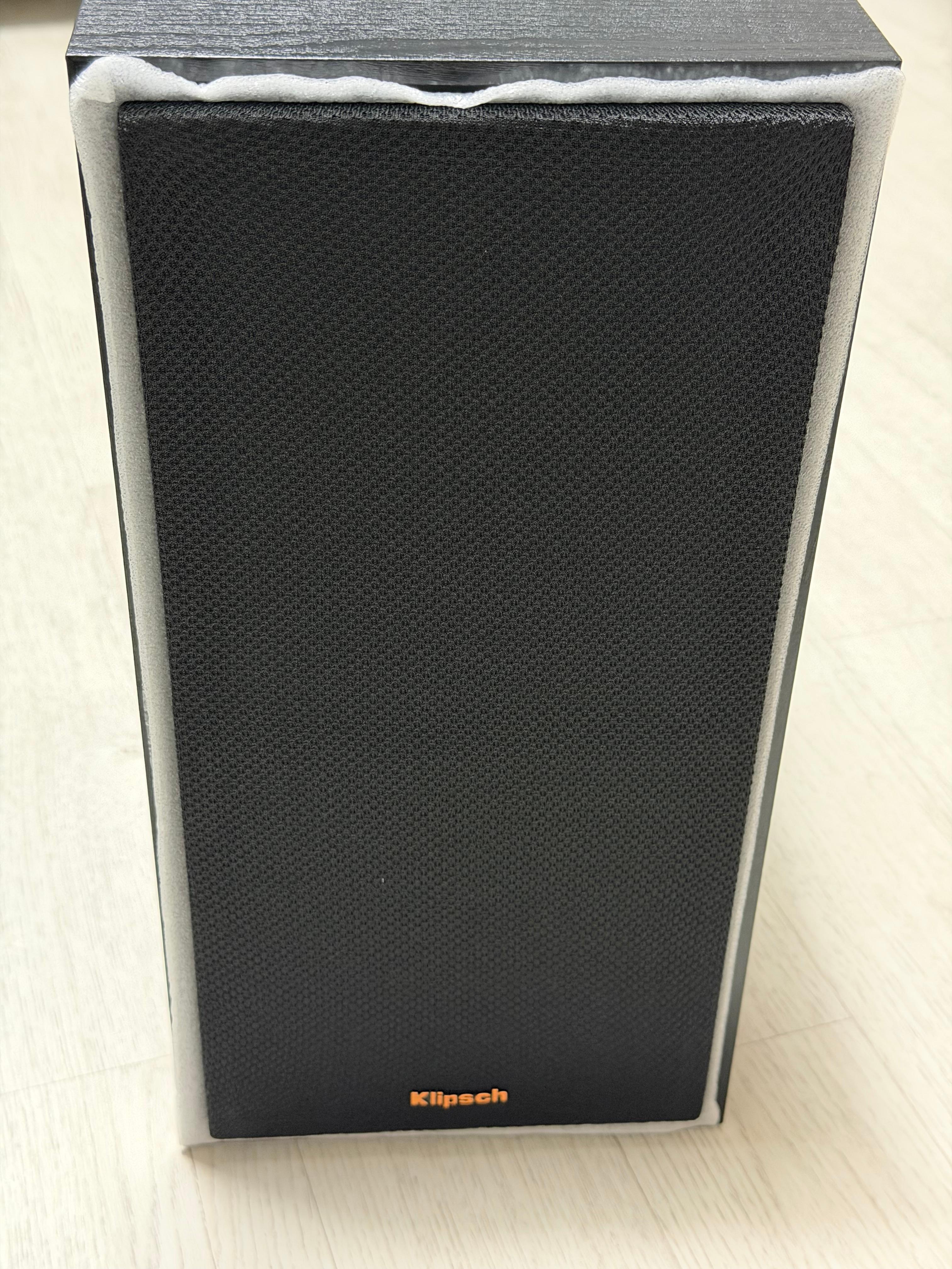 전면에 클립쉬 로고가 있는 전용 그릴을 끼워 줍니다. 디자인적으로는 그릴을 끼우면 특색이 없는 중후한 보통의 스피커처럼 보여서 썩 추천하고 싶지는 않습니다. 그릴은 구멍에 꽂는 방식은 아니고 자석으로 달라 붙는 방식입니다.