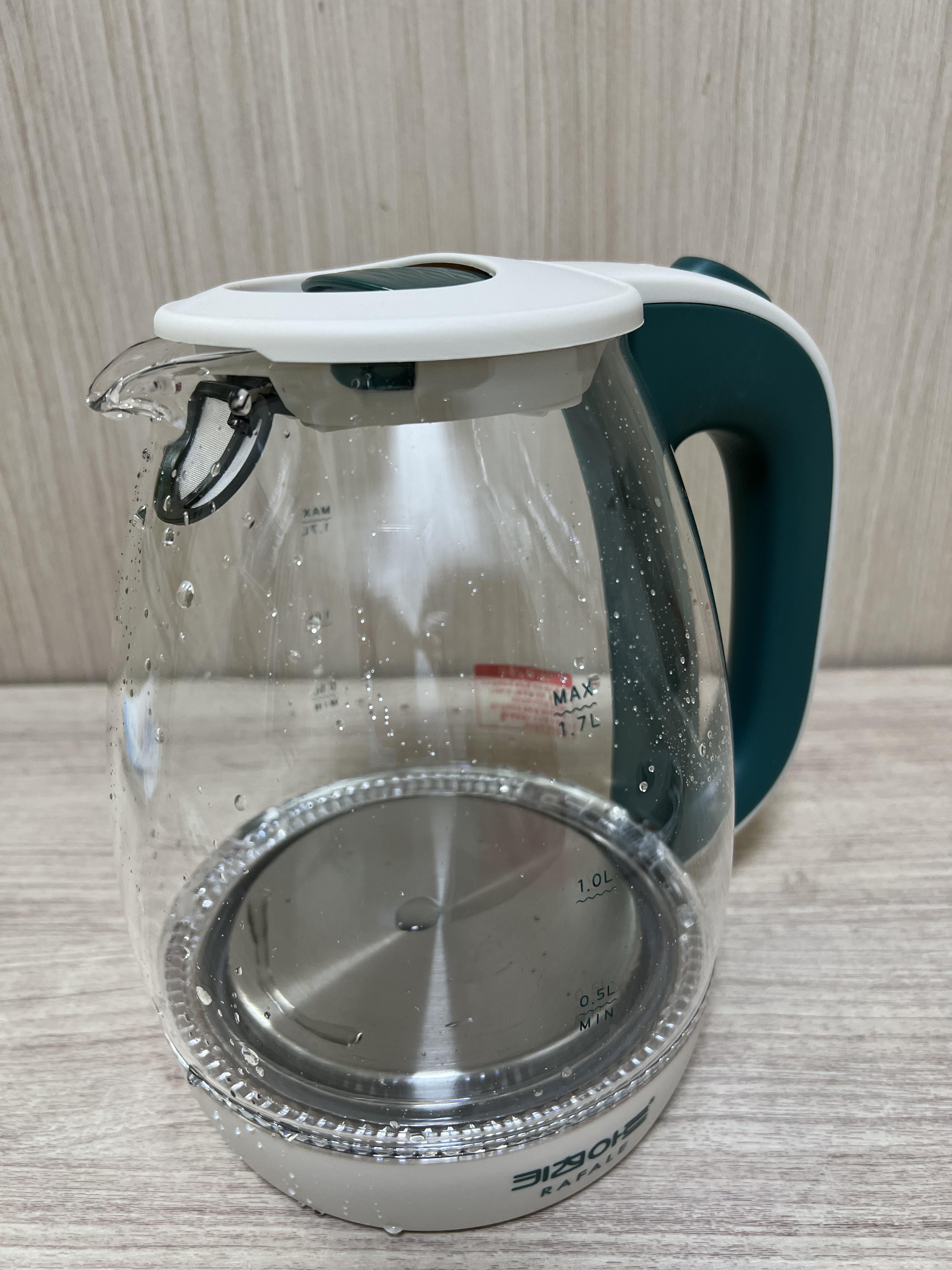 키친아트 라팔 전기주전자의 본체입니다. 사진찍다 말고 왜 본체가 물에 젖었나 싶으시겠지만, 유리에 뭔가 많이 묻어 있는 느낌이 들어서 위생상 한 번 물로 닦고 왔습니다. 왜냐면, 후기도 후기지만, 저는 커피를 마시는 게 주목적이었으니까요.^^;;; 겉모습은 강화유리로 되어 있어서 물의 양이나 물의 깨끗함 등을 확인할 수 있기 때문에 스테인레스 재질이나 플라스틱 재질보다는 신뢰할 수 있겠다고 생각합니다.
