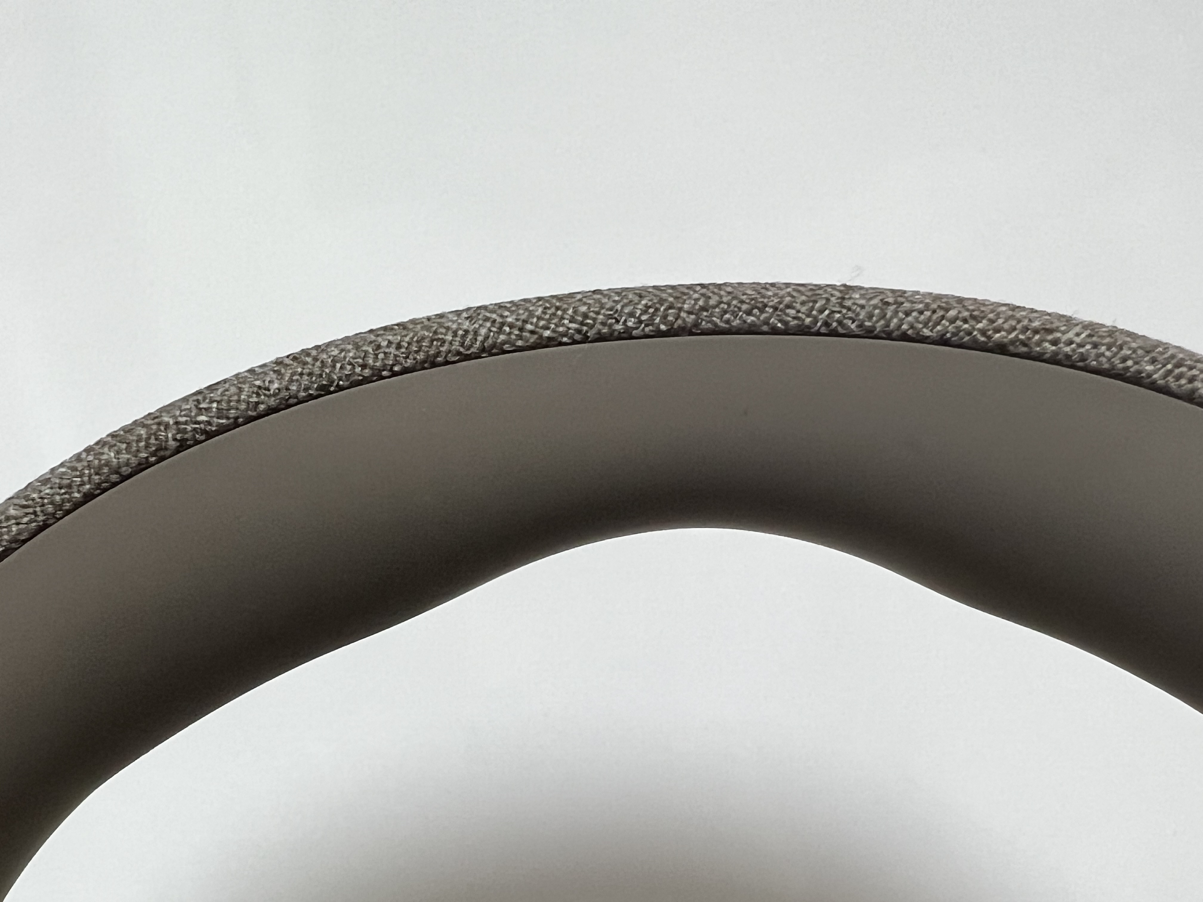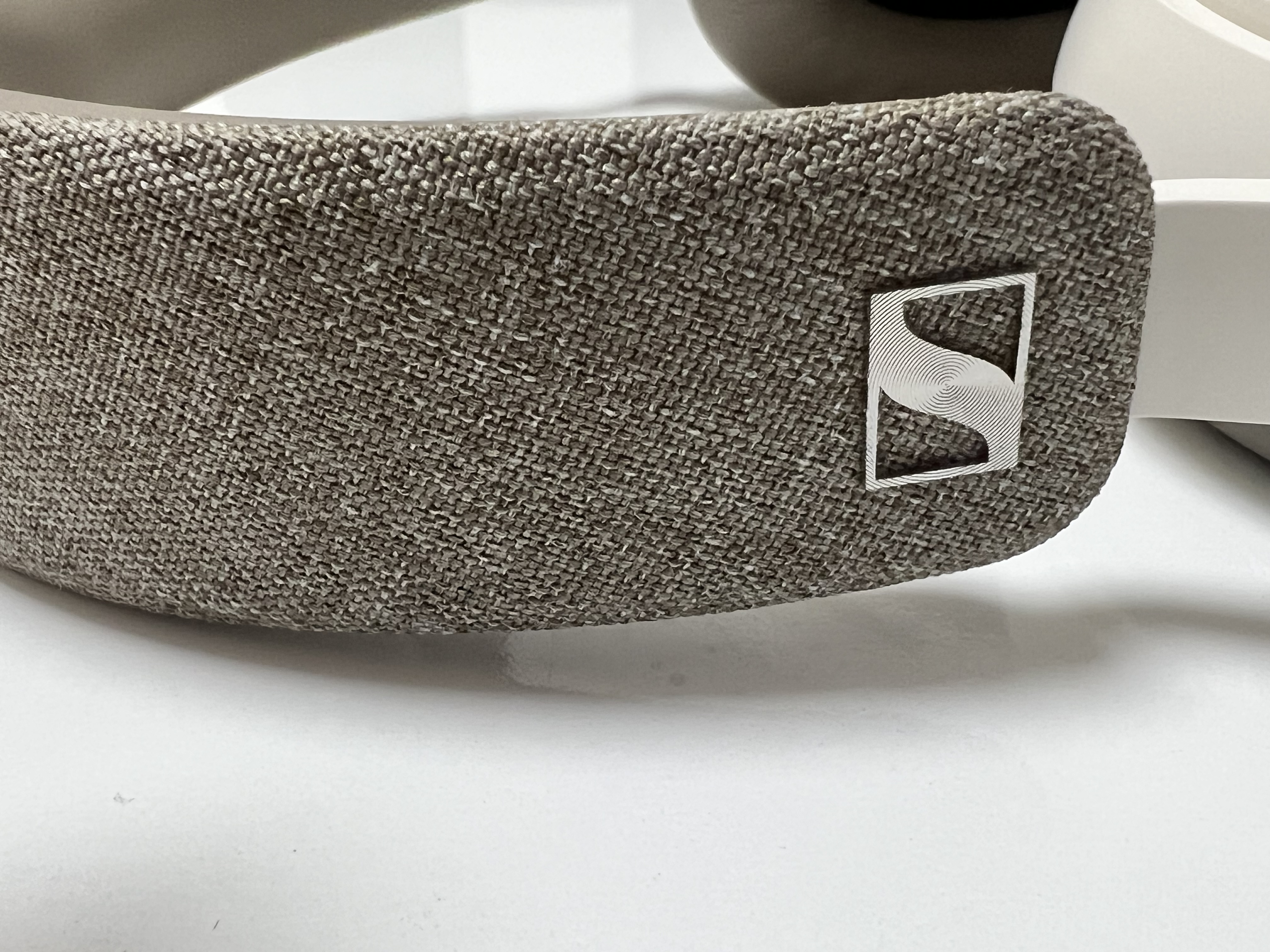 젠하이저 모멘텀4 헤드 밴드의 질감은 캐링 케이스의 재질과 같습니다. 굵은 실로 직조가 된 천인데 느낌이 굉장히 좋습니다. 그리고 금속성의 빛깔을 가진 젠하이저 로고가 예쁩니다.