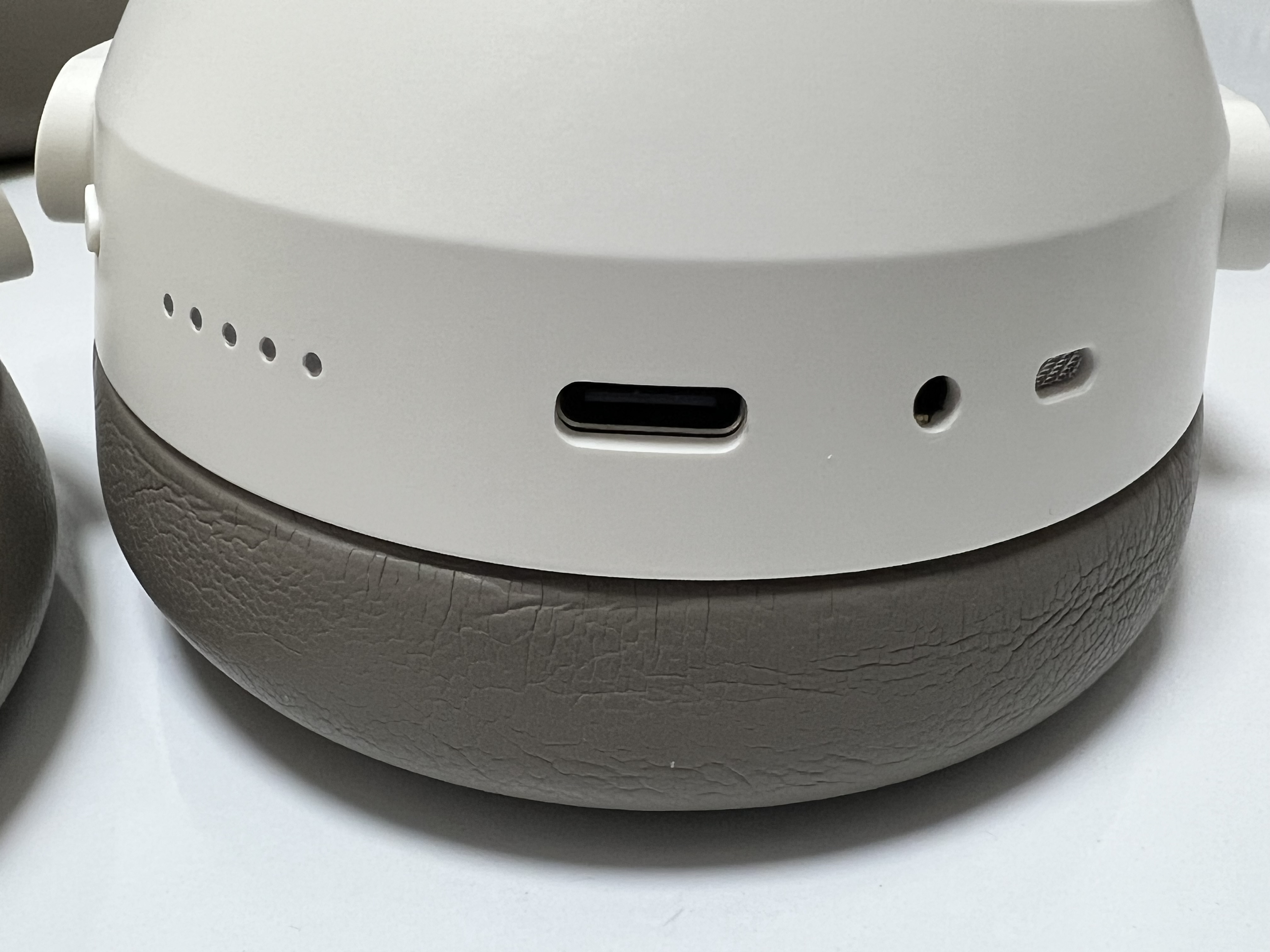 이어컵은 왼쪽과 오른쪽이 사뭇 다릅니다. 왼쪽에는 마이크 외에는 어떠한 기능도 없는 반면 오른쪽에는 전원 온/오프와 페어링을 담당하는 버튼, 충전상태/동작여부/페어링 등을 나타내는 5개의 LED, USB C 연결단자, 2.5mm 유선 연결단자, 마이크가 위치하고 있습니다. 그리고 오른쪽 이어컵의 중앙부는 터치패널입니다.