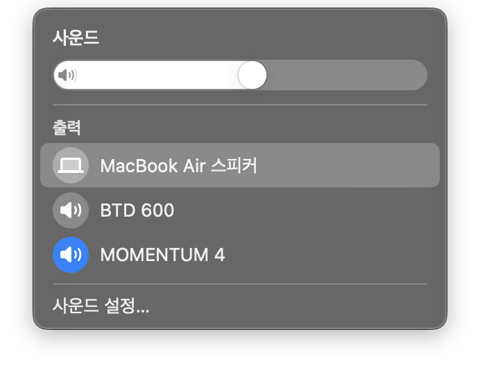 모멘텀4를 USB 연결하면 MOMENTUM 4가 제어판에 뜨는데 그걸 선택해 주면 음악을 들을 수 있습니다. 블루투스 연결보다 소리가 큰 것도 특징입니다.