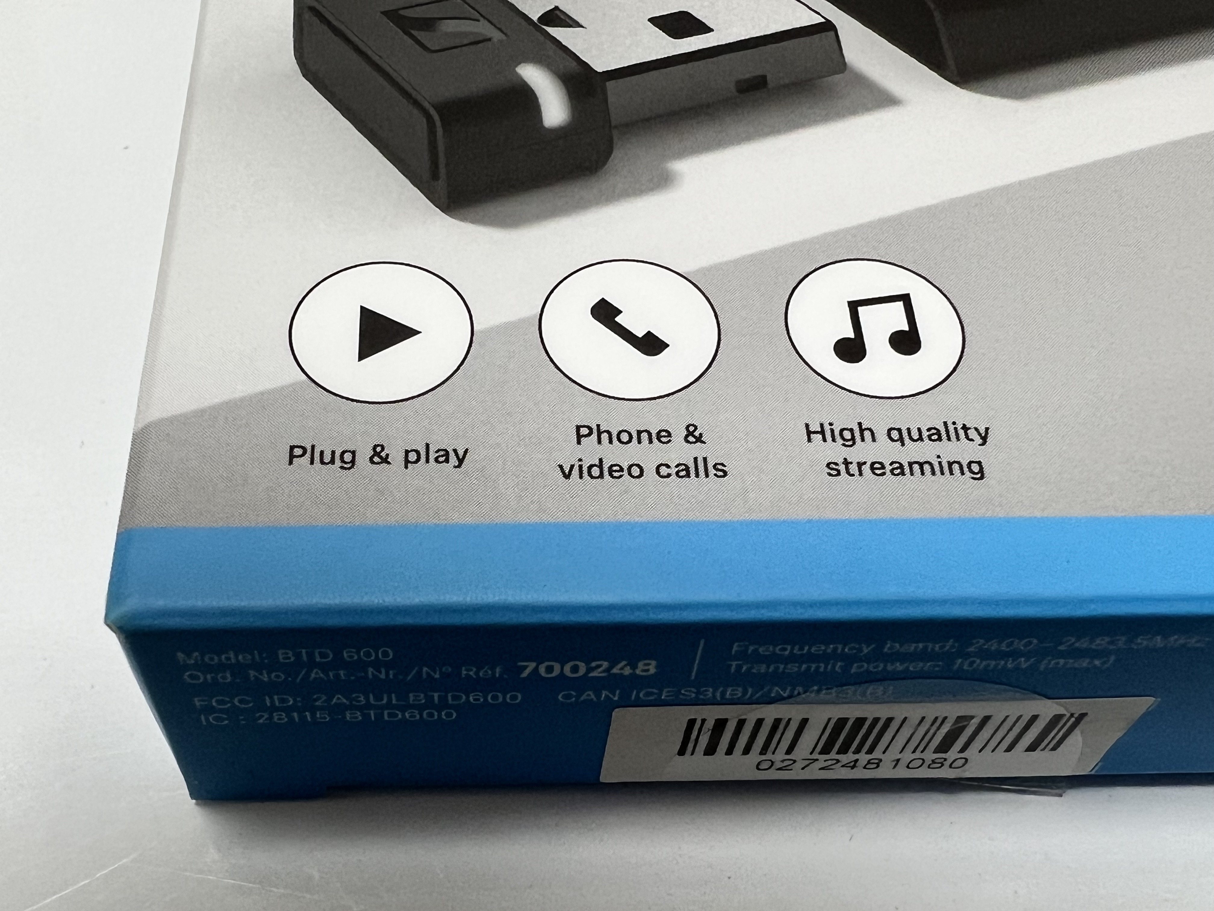 제품 박스 하단에는 플러그&플레이를 지원한다는 문구, 음성 및 영상 통화가 가능하다는 문구, 그리고 고음질 스트리밍이 가능하다는 문구를 아이콘과 함께 표시하고 있습니다. 오른쪽 하단에는 2년 보증을 해 준다고 써있기는 하는데 젠하이저의 국내 서비스가 그리 좋은 평가를 듣고 있진 못해서 저게 큰 의미가 있나 싶기는 합니다. 1년이든 2년이든 기간이 중요한 게 아니라 그 정해진 기간 내에 만족스러운 서비스를 제공하는 것이 훨씬 더 중요한 문제가 아닐까요.