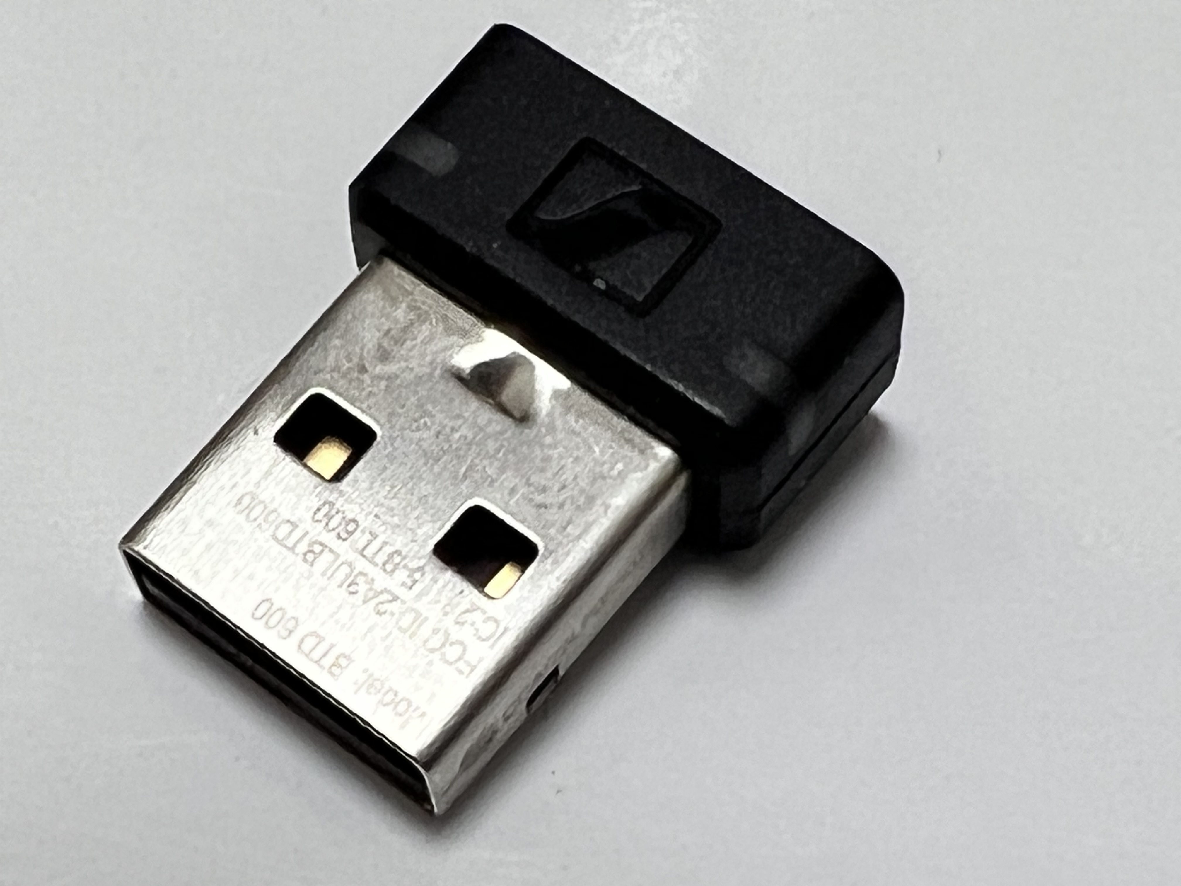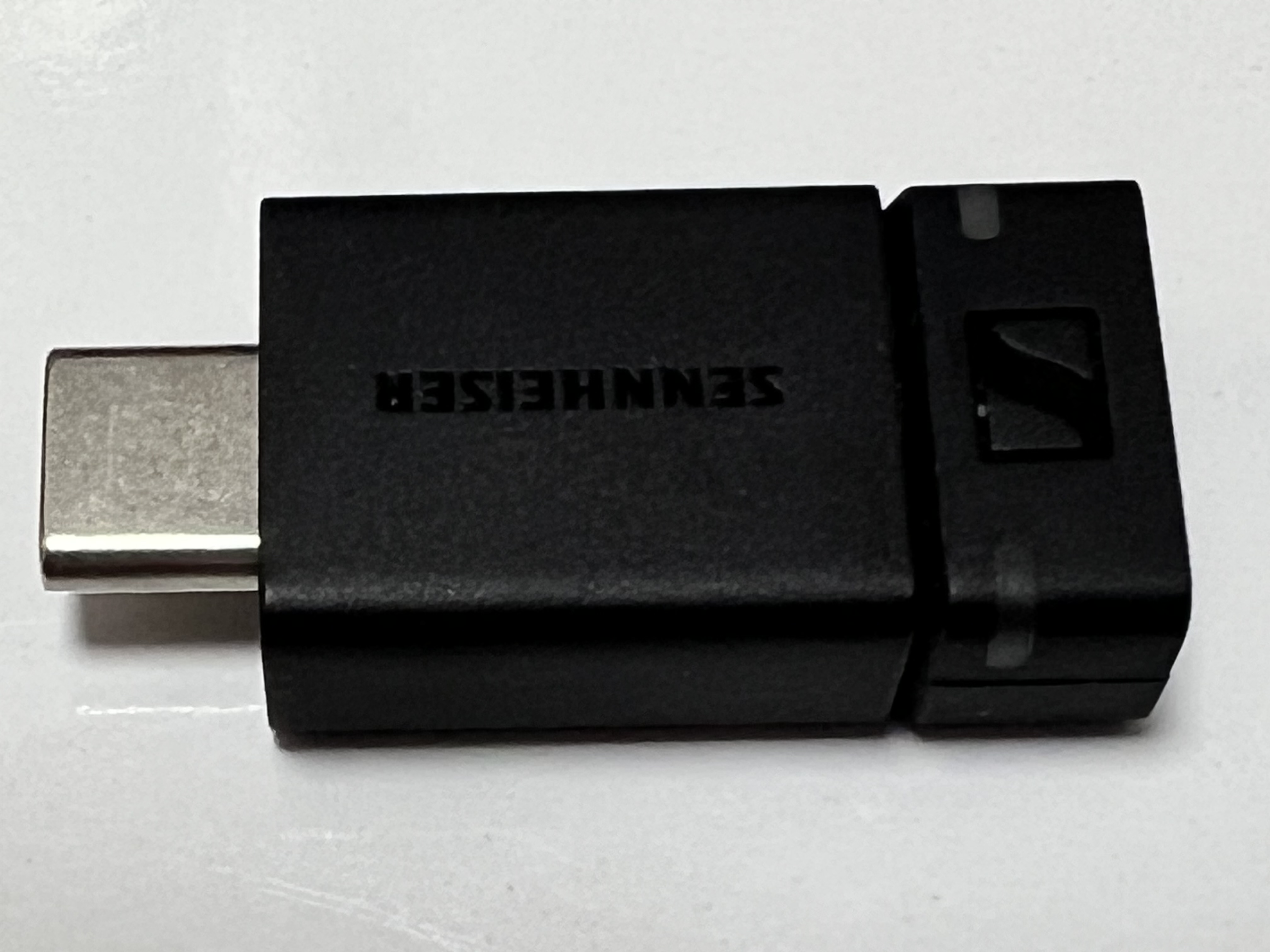 젠하이저 BTD600은 USB A 커넥터가 본체의 2배 길이 정도 될 만큼 굉장히 작은 크기를 갖고 있습니다. 근데 굳이 USB A 단자를 가진 이유를 모르겠습니다. 물론 PC에서는 여전히 USB A 단자를 많이 제공하고 있긴 하지만 USB C가 대세가 아닐까요? 그리고 컴퓨터에서 고정형으로 놓고 쓸 거면 다소 많이 튀어나와도 사용하는 데 별 불편함은 없을 거고, 변환젠더를 이용해서 모바일 기기에서 사용하게 되면 엄청 튀어 나와 불편함이 심해질 텐데 말입니다.