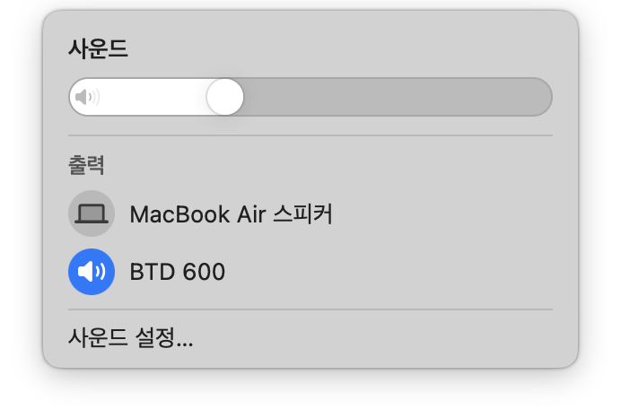 제어판 또는 오디오 설정에서 출력을 BTD600으로 변경해 주면 BTD600의 코덱을 따라 이어폰/헤드폰에 출력이 됩니다.