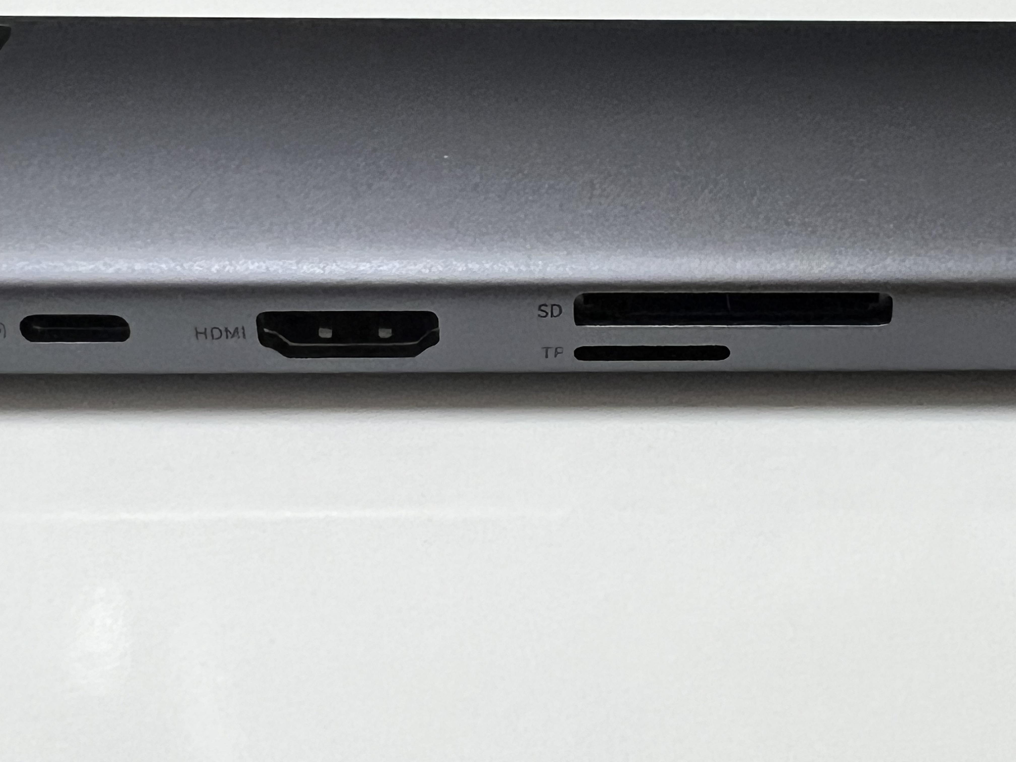 Baseus 8in1 USB 3.1 허브의 입출력 단자는 4K 60Hz를 지원하는 HDMI 단자, USB 3.1(10Gbps) 단자 3개, 100W까지 입력을 지원하는 USB PD, 기가비트 이더넷 지원하는 RJ45 단자, SD/TF 메모리 단자 등을 가지고 있습니다.