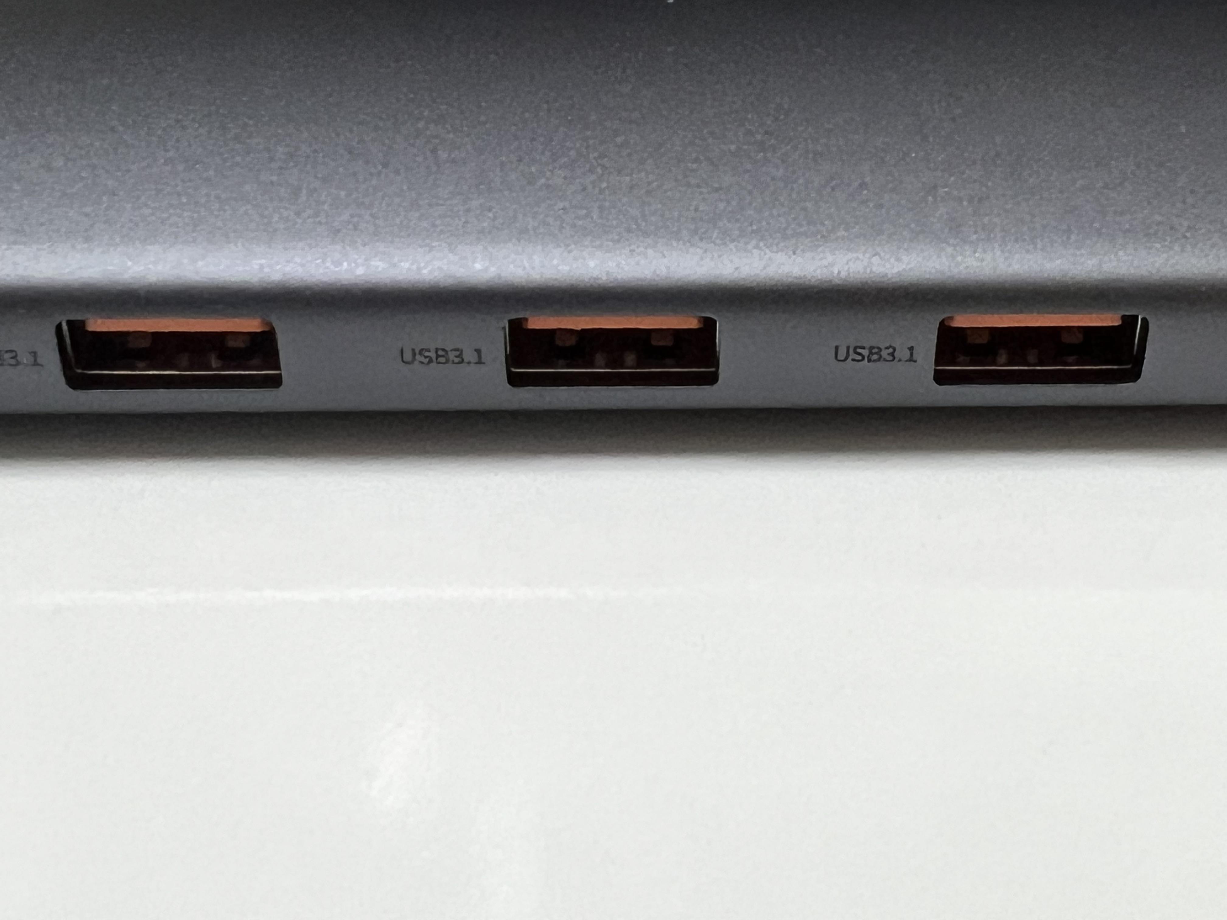 USB 허브인 만큼 다양한 기기를 연결해 봤습니다. 가장 먼저는 AptX Adaptive 동글 BTD600, 휴대용 15.6인치 모니터, 외장 SSD, 탁상용 선풍기 등 물릴 수 있는 건 다 물려 봤습니다. 그랬더니 제품에 따라 정상적으로 동작하지 않는 것들이 꽤 있었습니다. USB 허브라고 해서 그걸로 충전을 한다거나 원활한 데이터 전송을 마음 놓고 할 수 있는 것은 아니었기 때문에 곤란한 상황이 많았습니다. 특히 케이블을 굉장히 많이 가렸습니다.